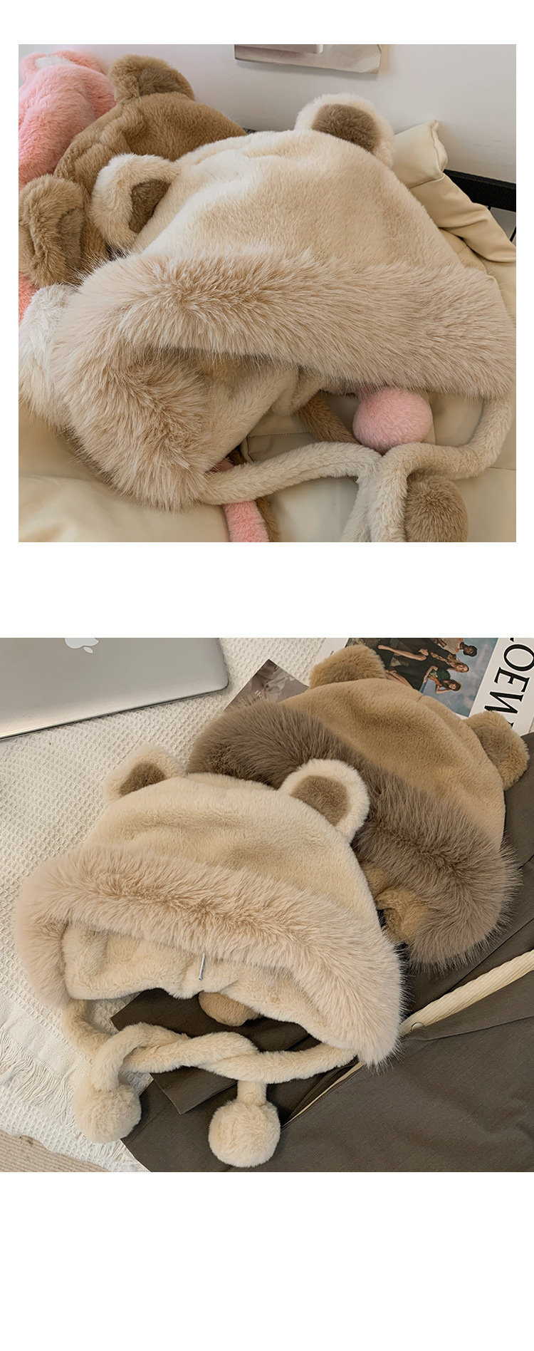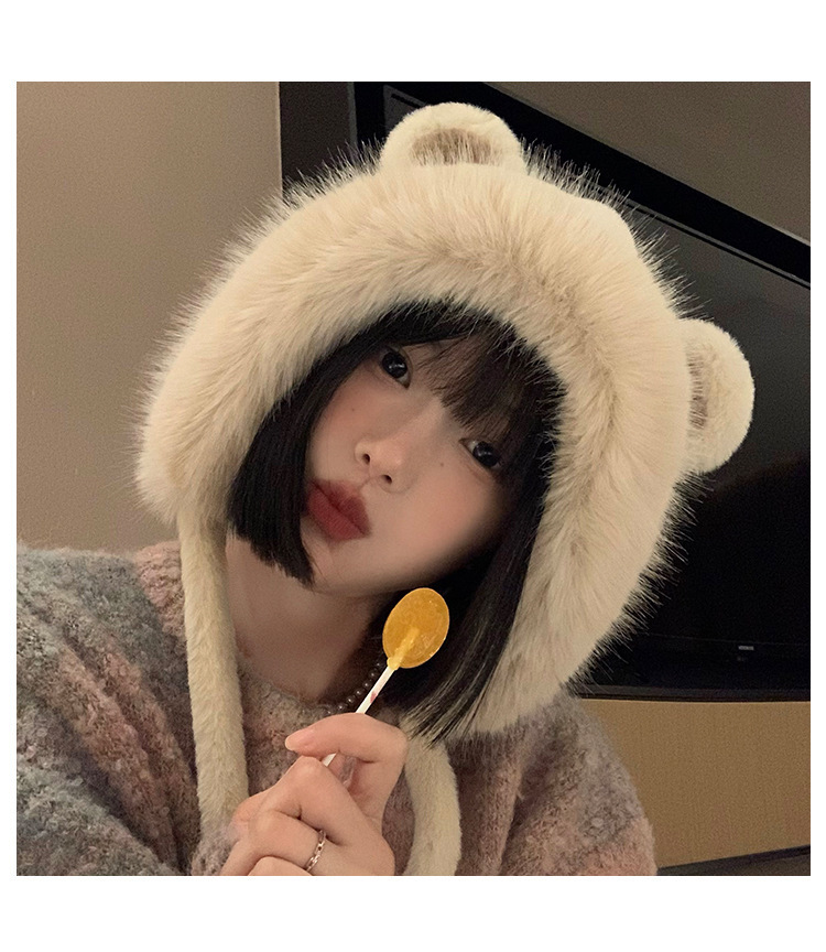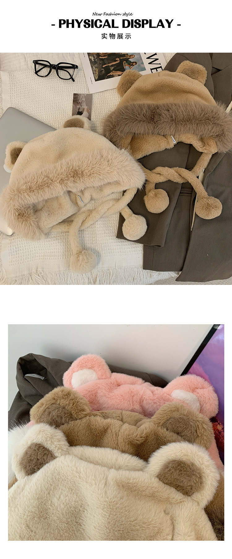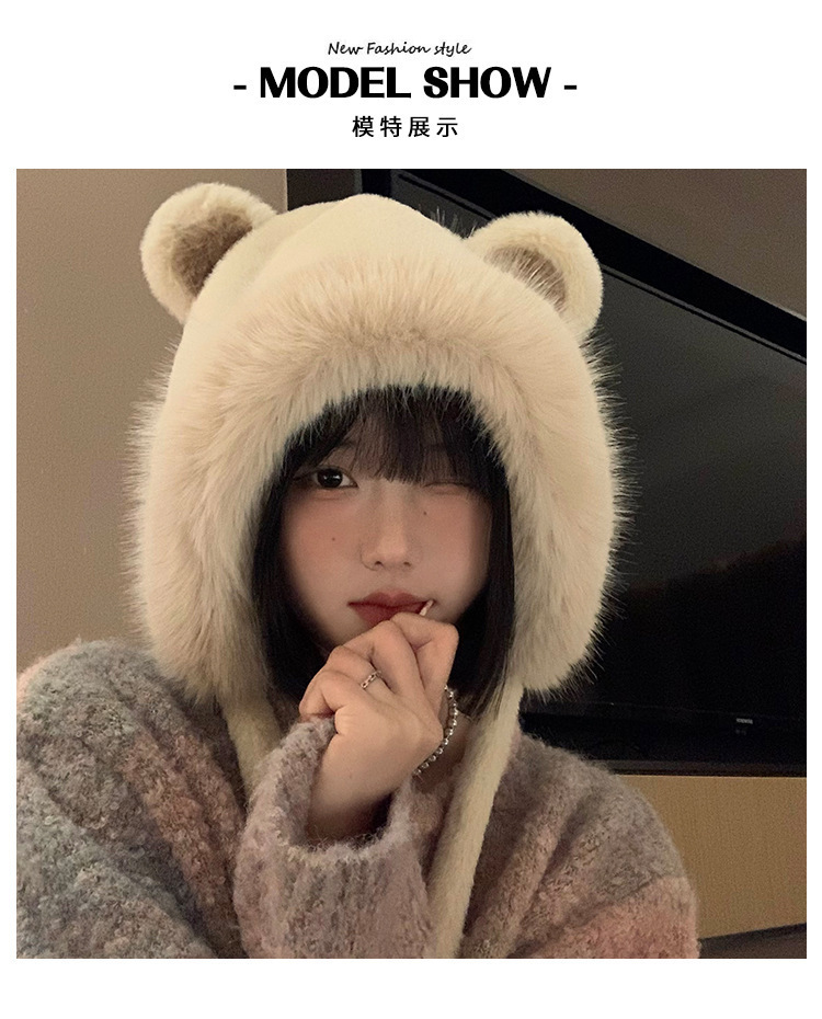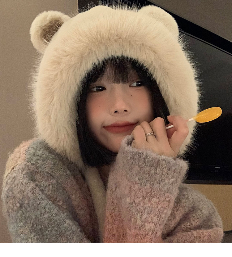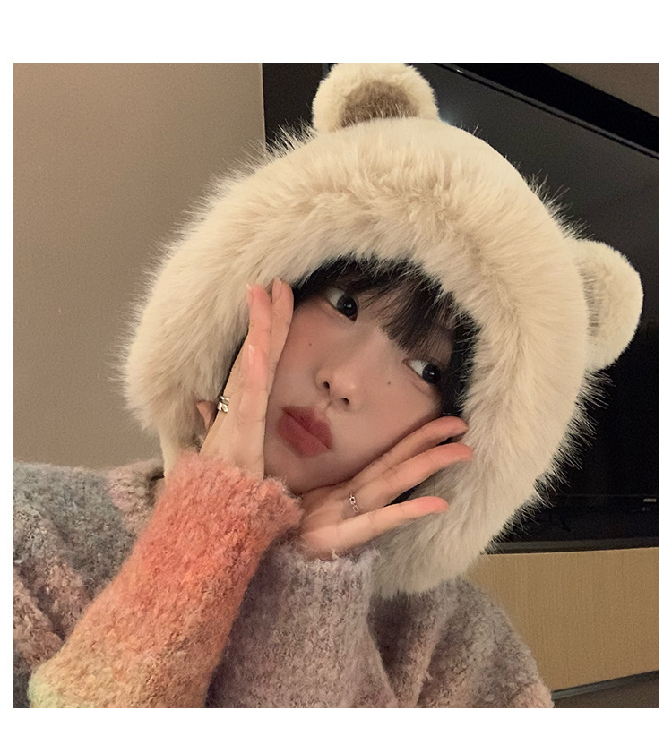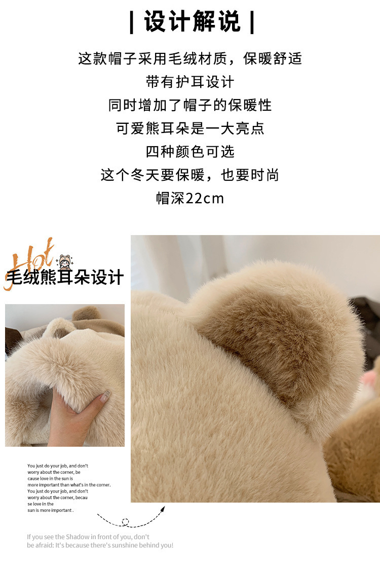 한국식 귀여운 곰 귀 풀오버 모자 여자의 가을과 겨울 예술적 봉제 모자 기모 두꺼운 야외 방한 귀 보호 모자스토어 가기