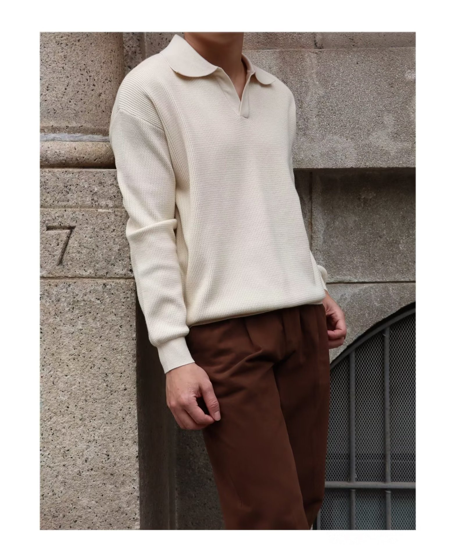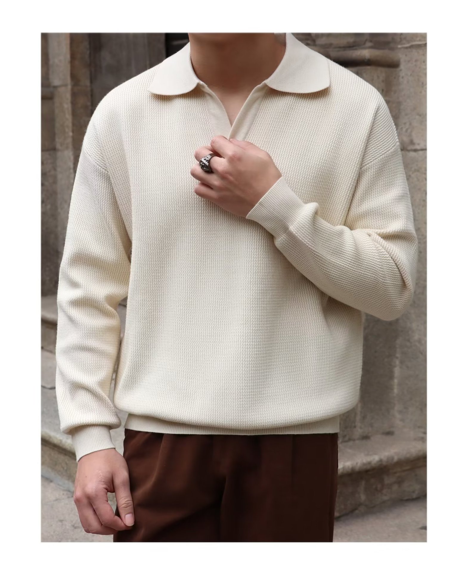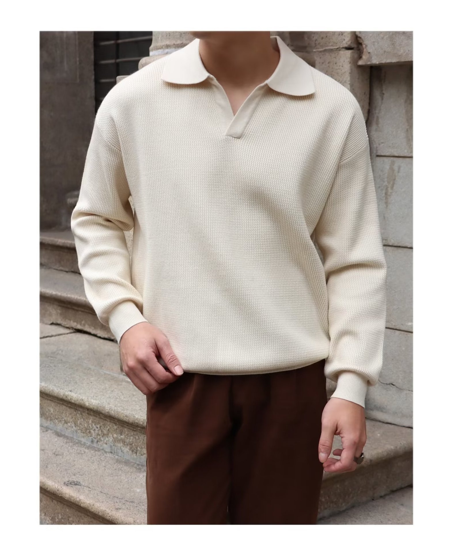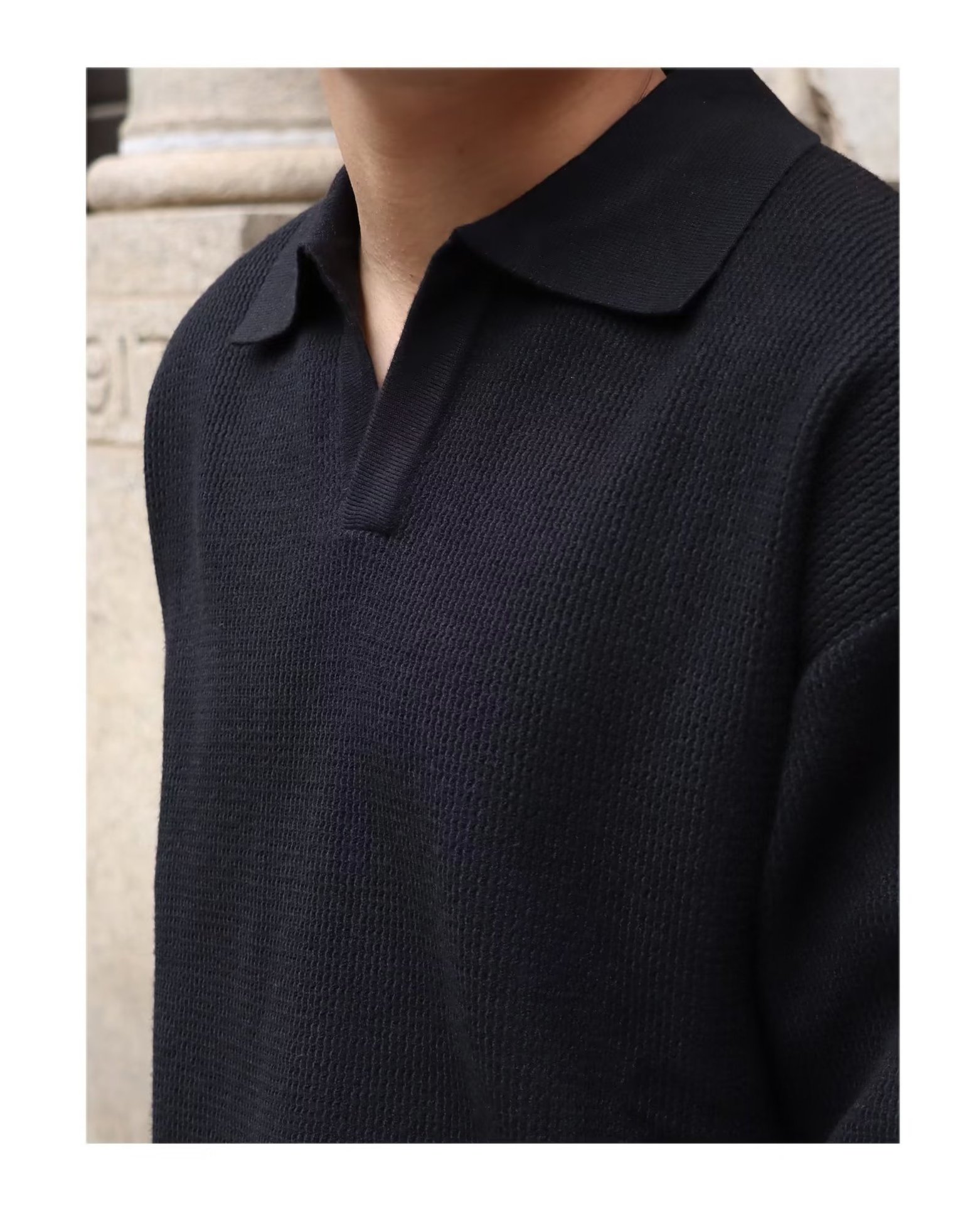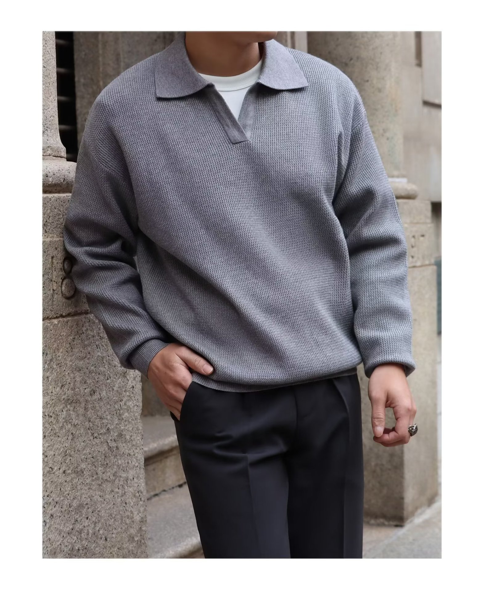 단색 셔츠 칼라 남성용 긴팔 겉옷 가을 탑 유행 가짜 투피스 니트 스웨터 남성용 한국식 슬림핏스토어 가기