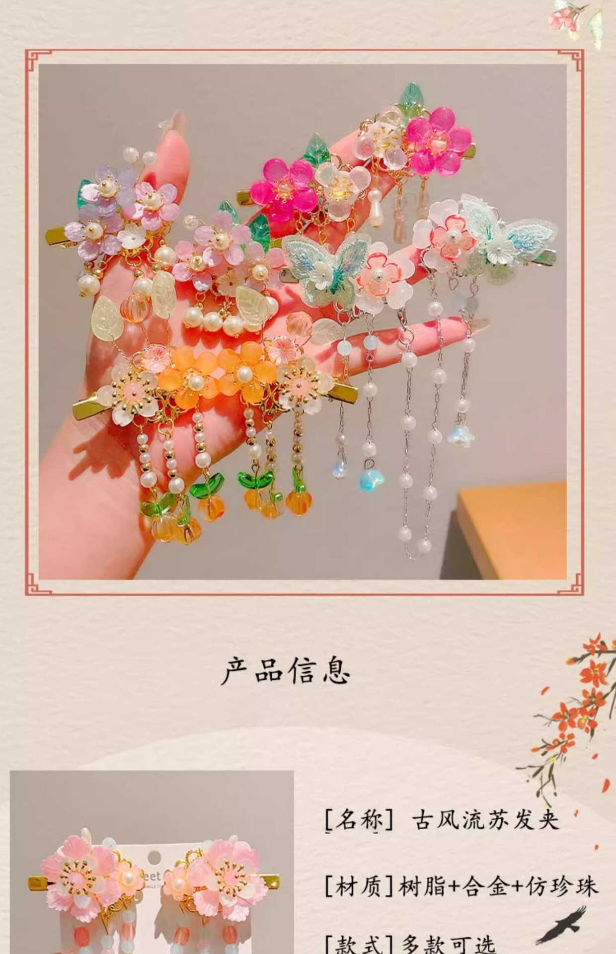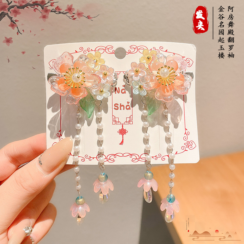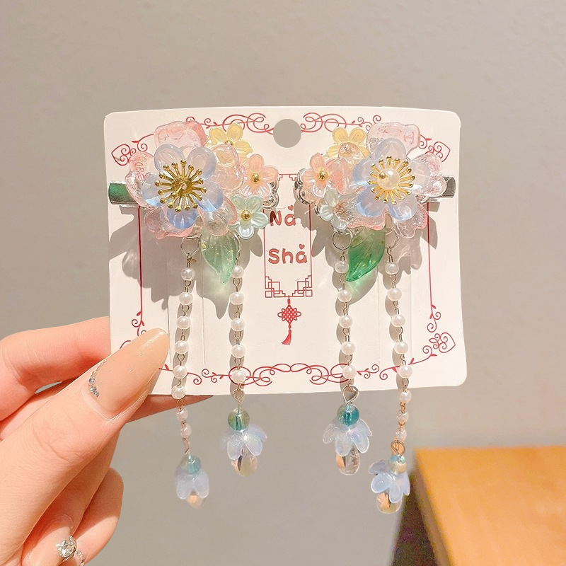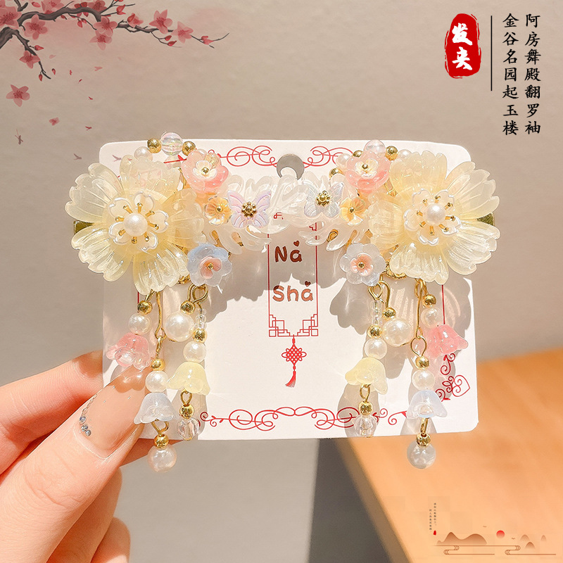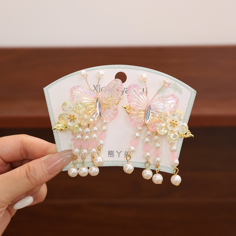 2025 새로운 Hanfu 헤어 액세서리 어린이 헤어 클립 소녀 나비 매듭 술 고대 스타일 헤어 클립 말 얼굴 스커트 액세서리 머리 장식스토어 가기