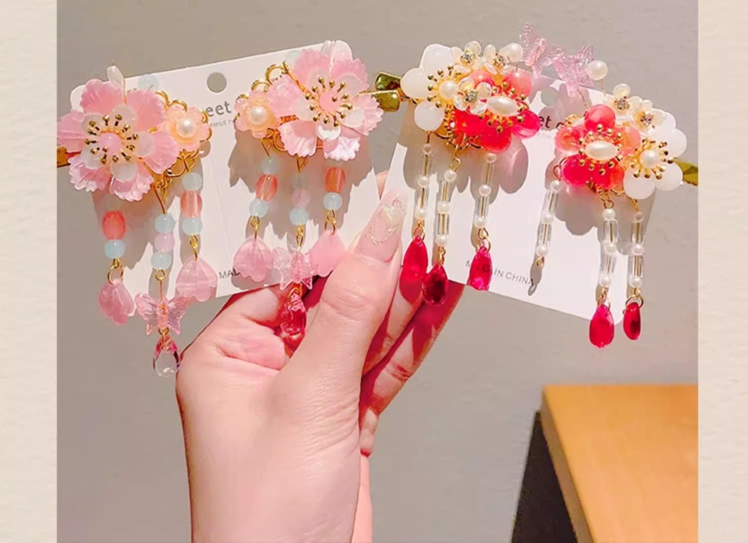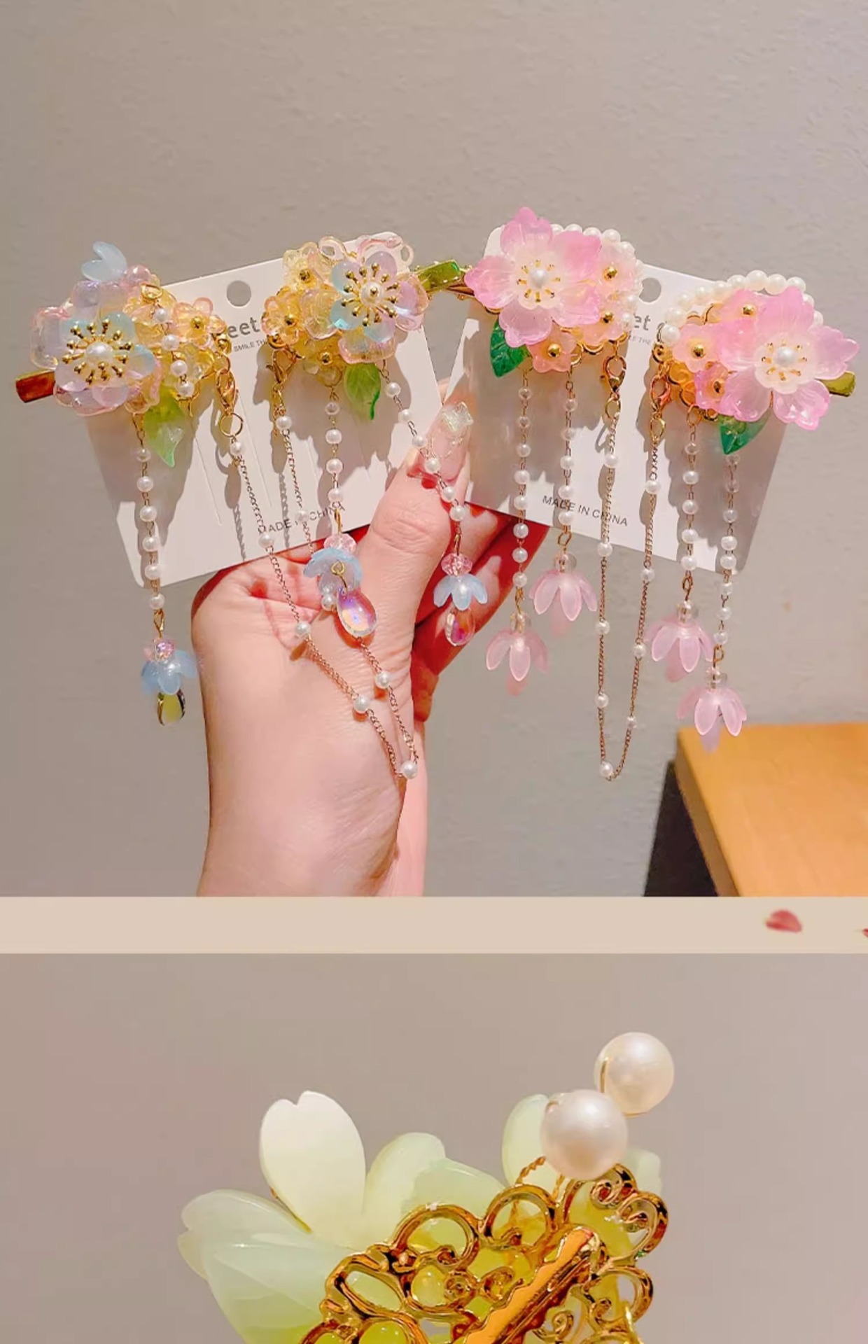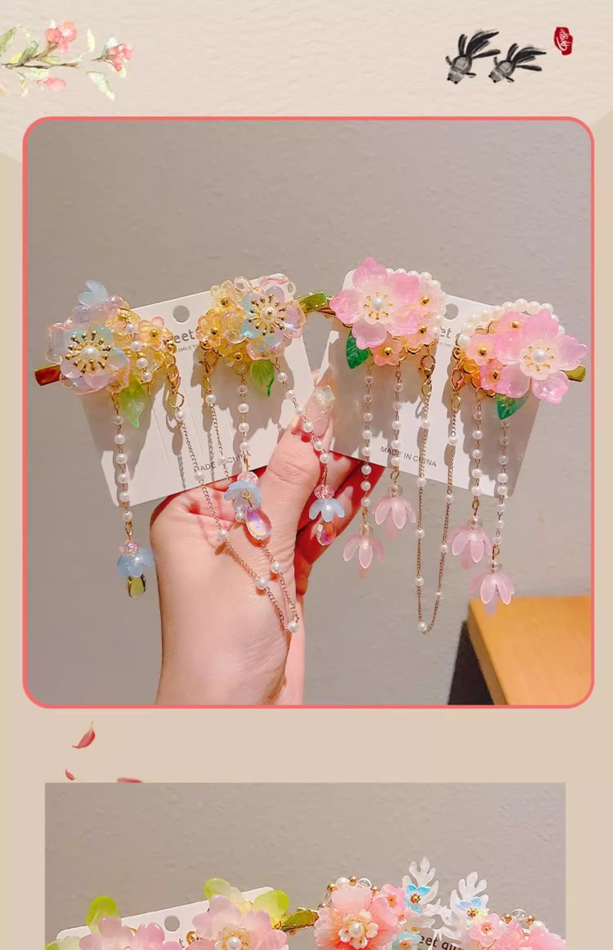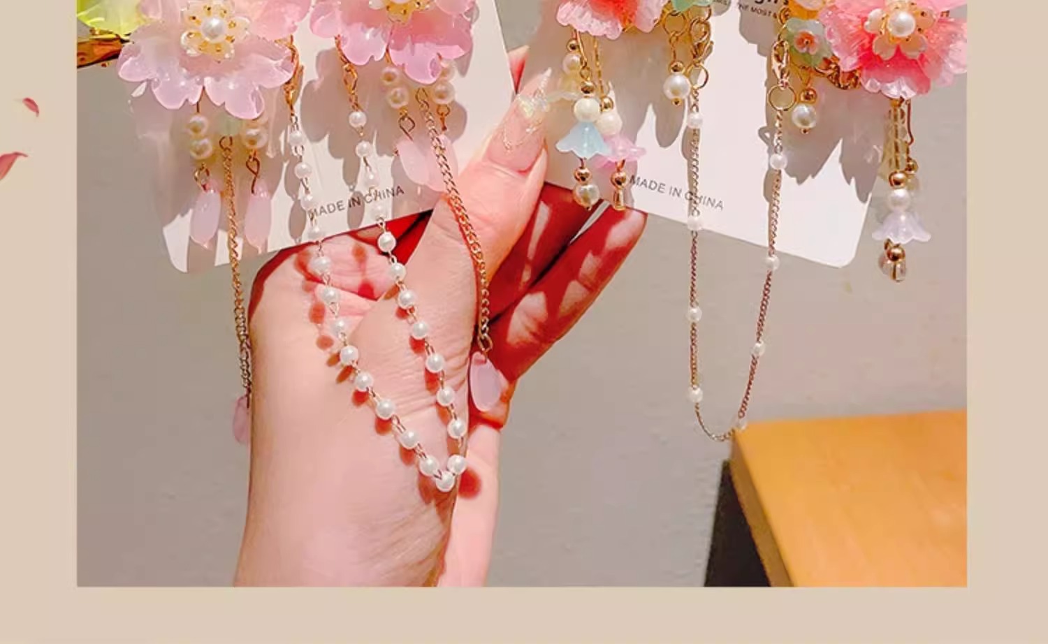 • 23#핑크 플라워 펄 스타일 스플릿 태슬#