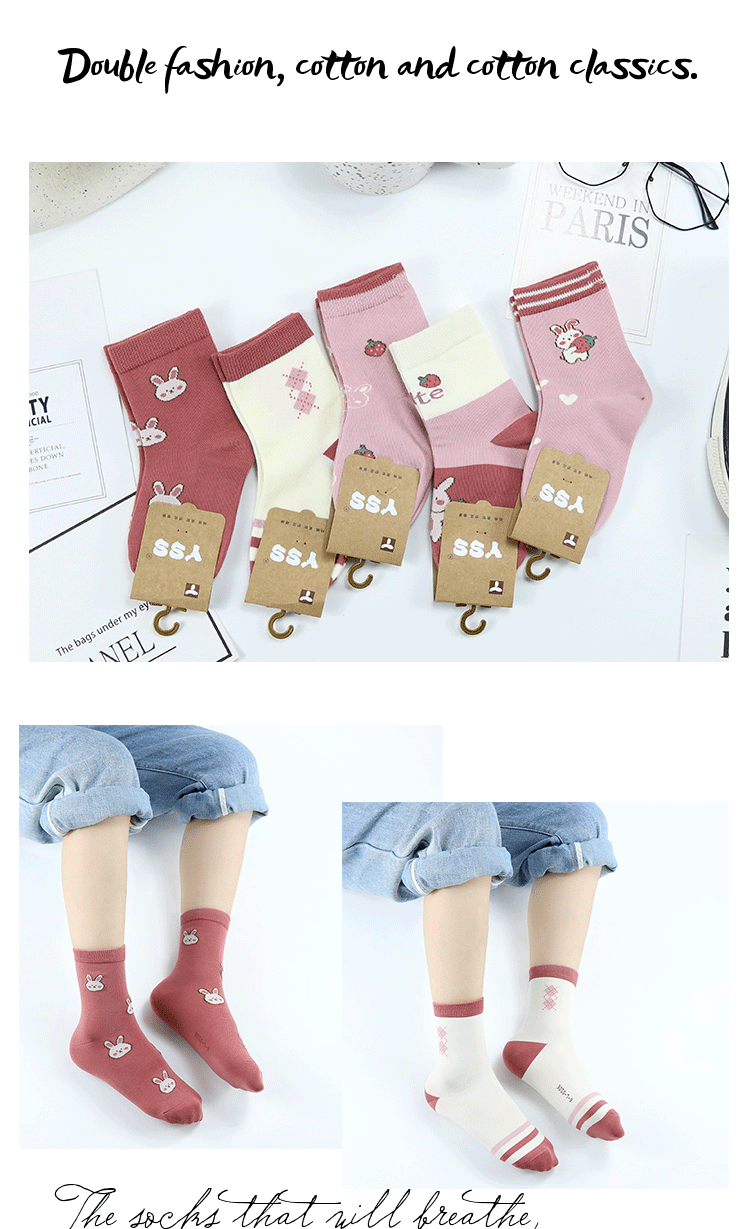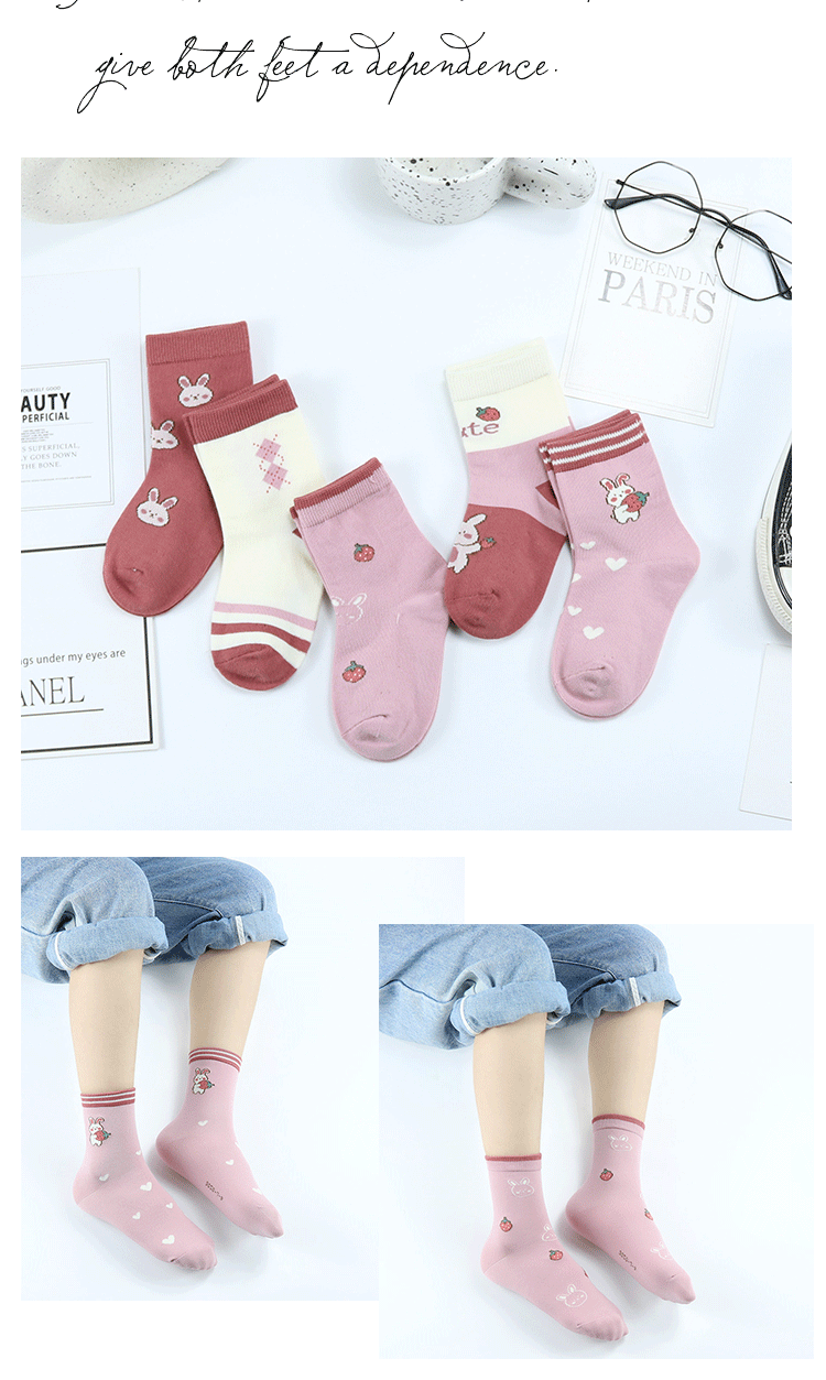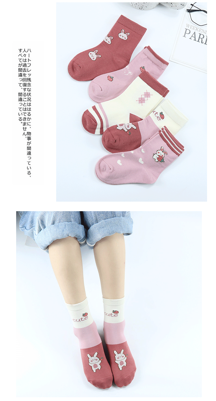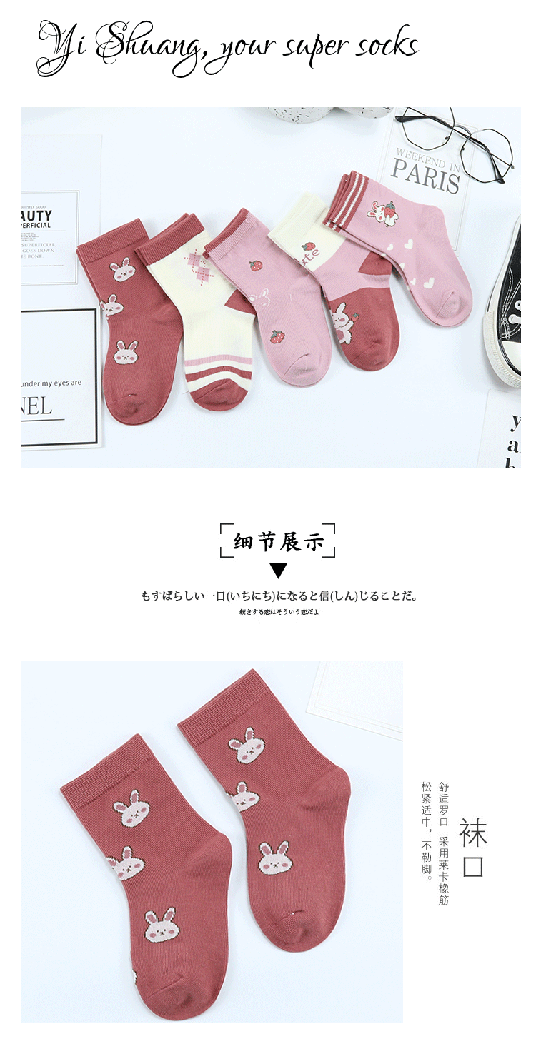 이순신 쌍 어린이 양말 가을과 겨울 새로운 만화 토끼 중간 길이 양말 빗질면 한국식 학생 양말 뼈없는 어린이 양말