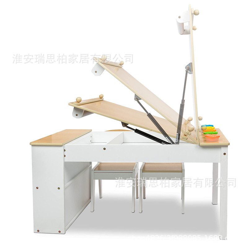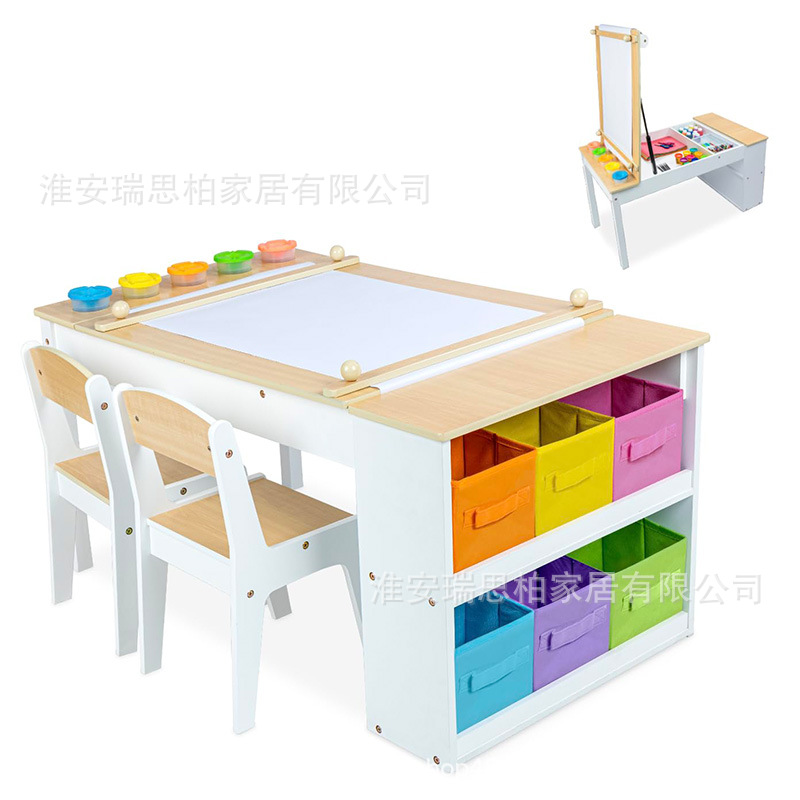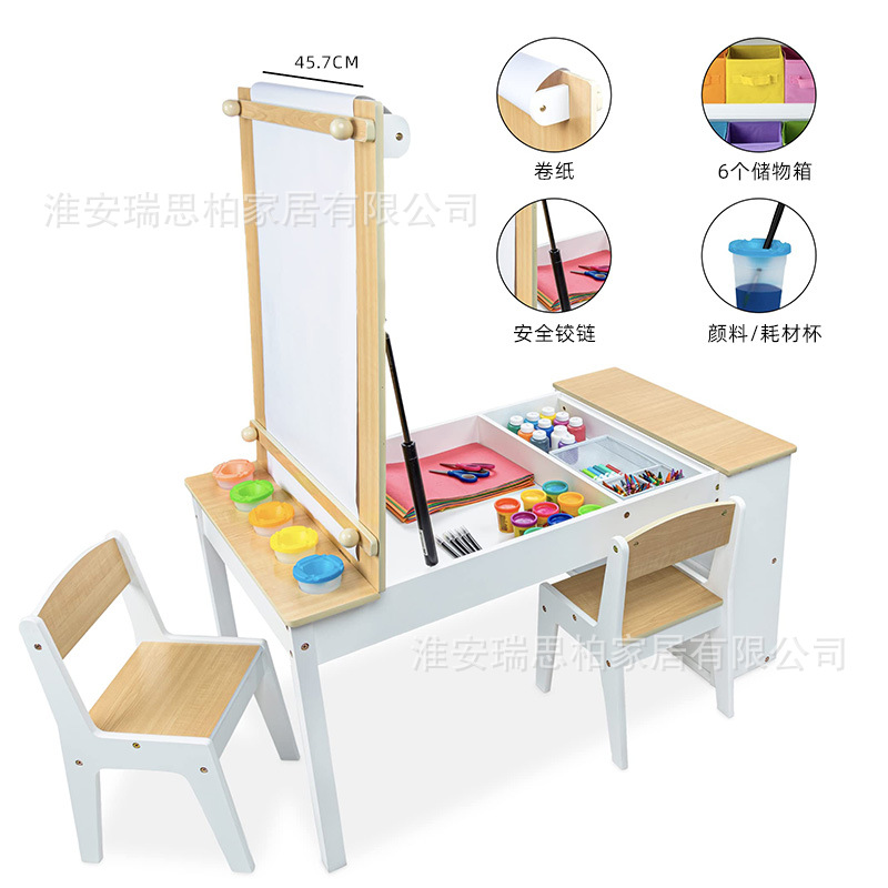 아트 이젤 테이블과 의자 세트 어린이 손 놀이 나무 활동 보관 상자와 종이 롤 어린이 예술스토어 가기