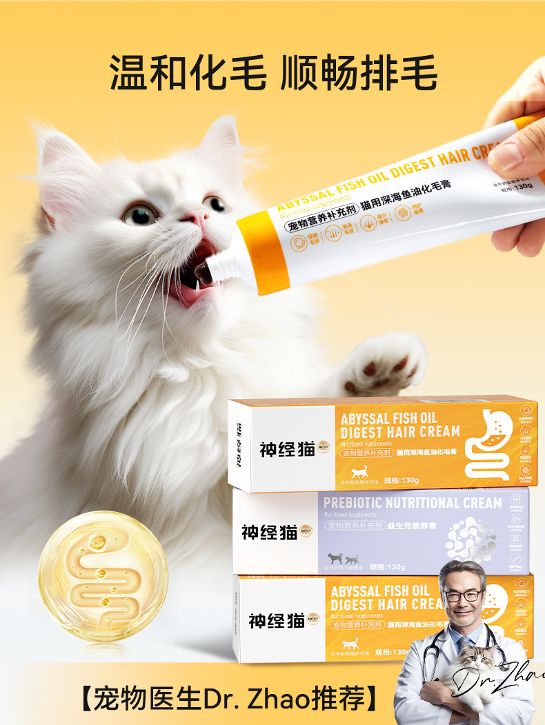 네이버캣 고양이 및 개를 위한 피쉬오일 헤어크림, 구토를 조절하고 제거하는 특수 영양크림, 애완동물 털뭉치 제거