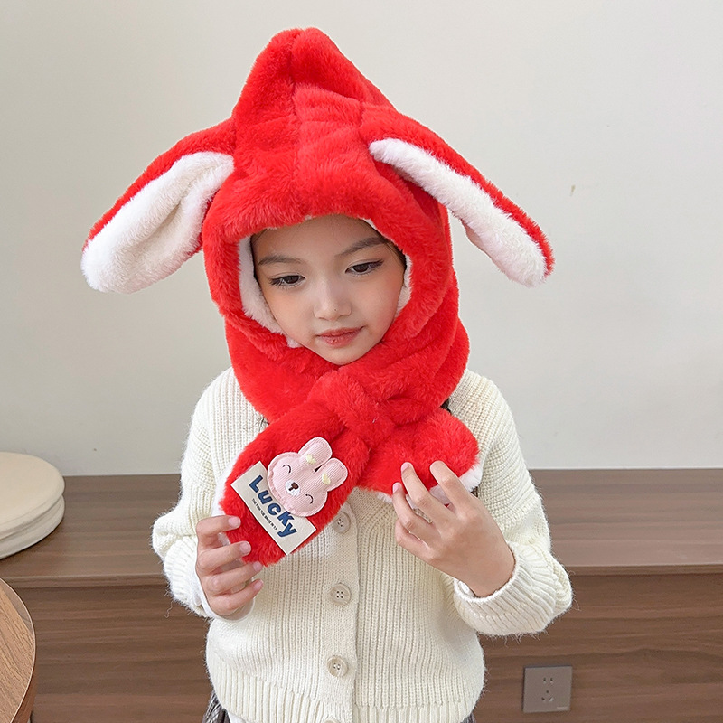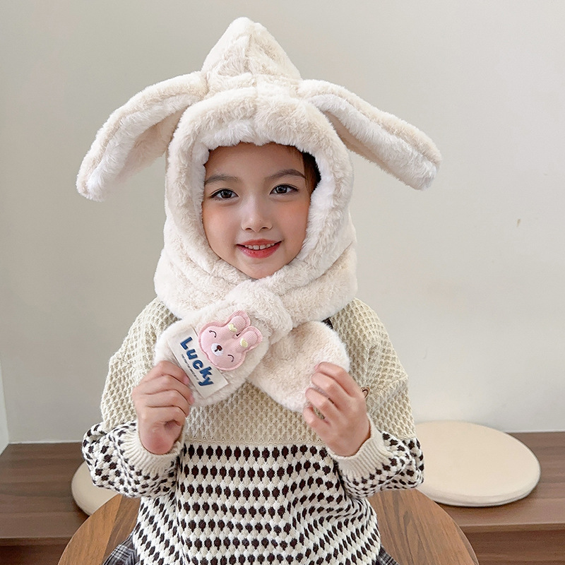겨울 편안한 따뜻한 통기성 어린이 풀오버 캡 귀여운 슈퍼 귀여운 귀 토끼 인쇄 크로스 넥 플러시 캡스토어 가기