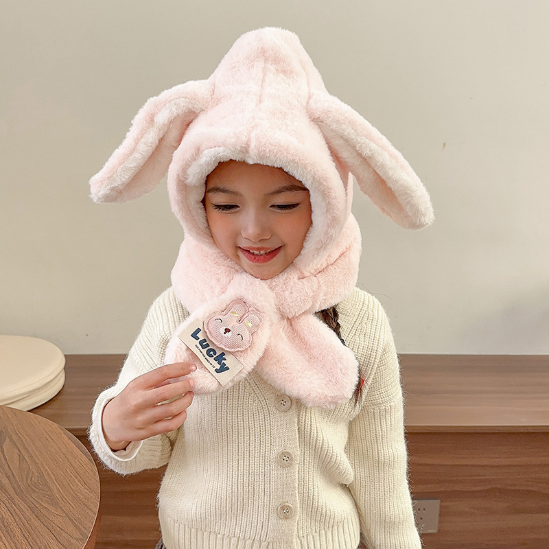 겨울 편안한 따뜻한 통기성 어린이 풀오버 캡 귀여운 슈퍼 귀여운 귀 토끼 인쇄 크로스 넥 플러시 캡