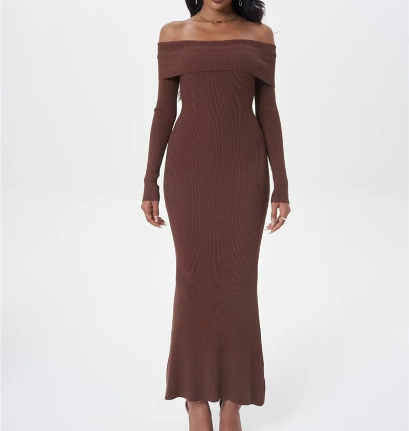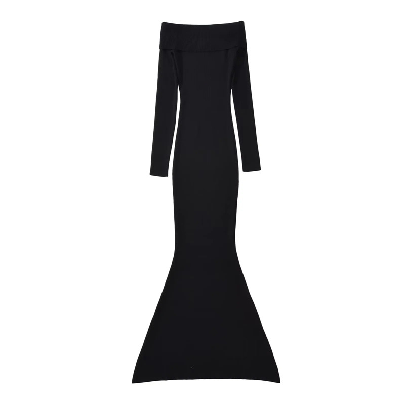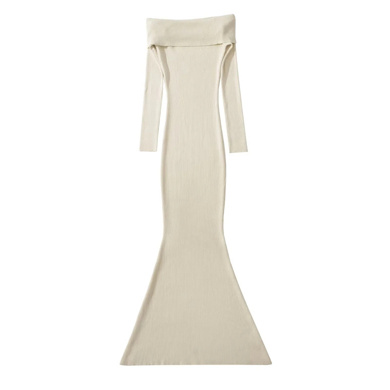 유럽과 미국 스타일 섹시한 옷깃 어깨 긴 소매 니트 피쉬 테일 스커트 탄성 꽉 엉덩이 원피스 원피스 여성스토어 가기