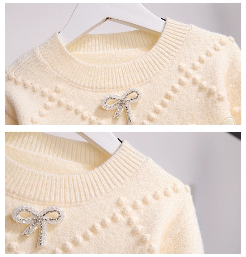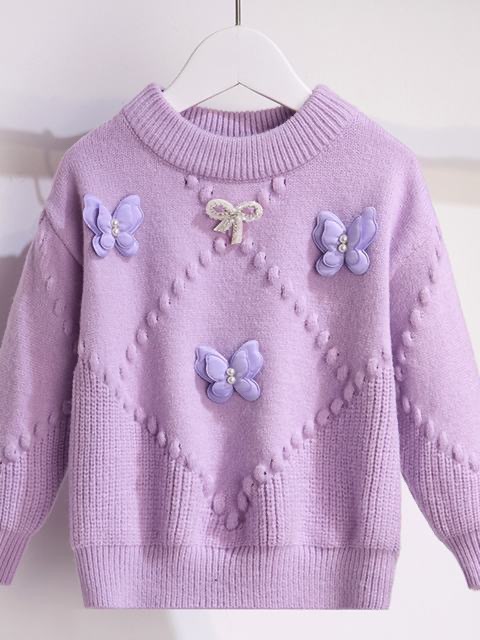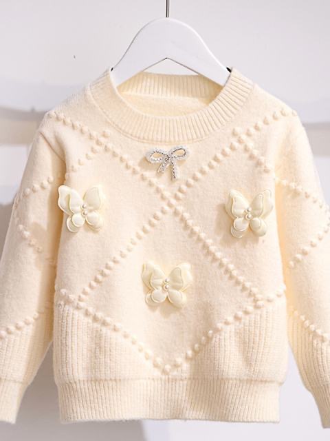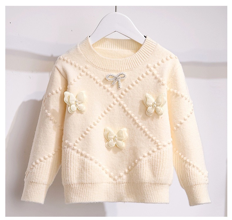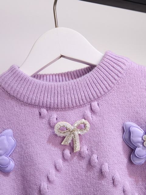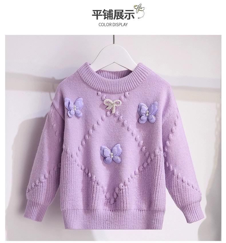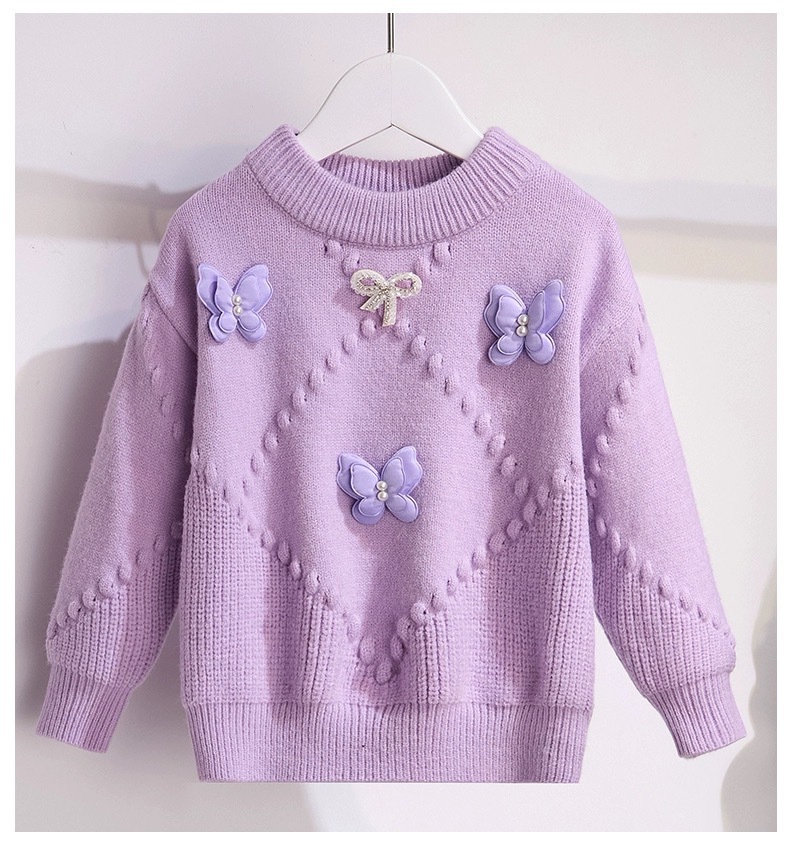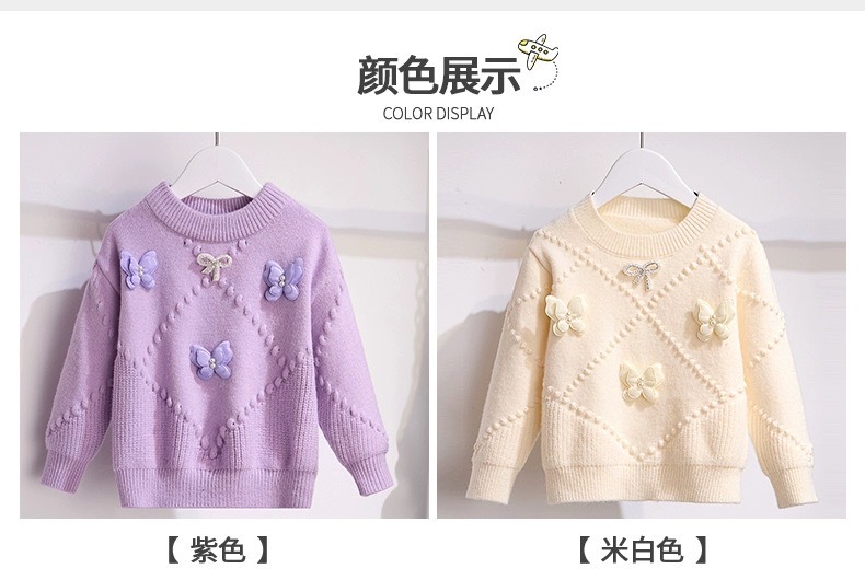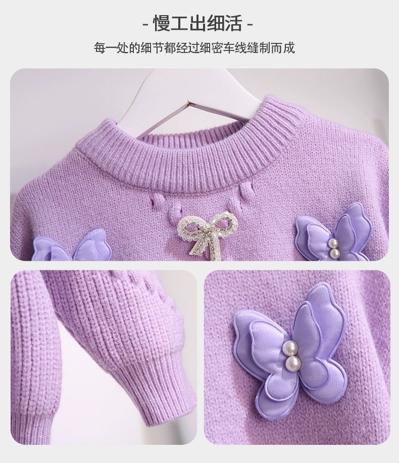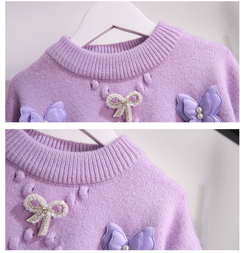소녀의 서양식 가을과 겨울 스웨터 2023 새로운 패션 소녀의 입체 나비 니트 셔츠 큰 어린이 인터넷 연예인 탑스토어 가기