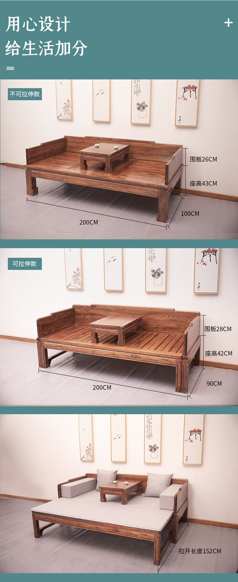 침대 침대 느릅 나무 중국 스타일 아파트 작은 가정용 단단한 나무 오래된 개폐식 작은 아파트 거실 luohan 침대 나무 Luohan 소파 새로운스토어 가기