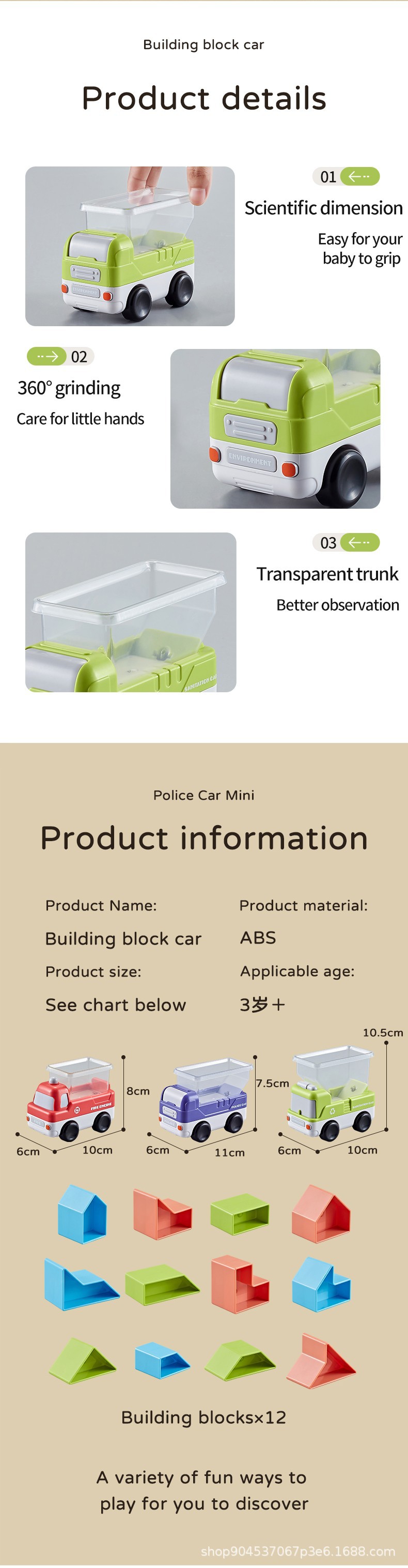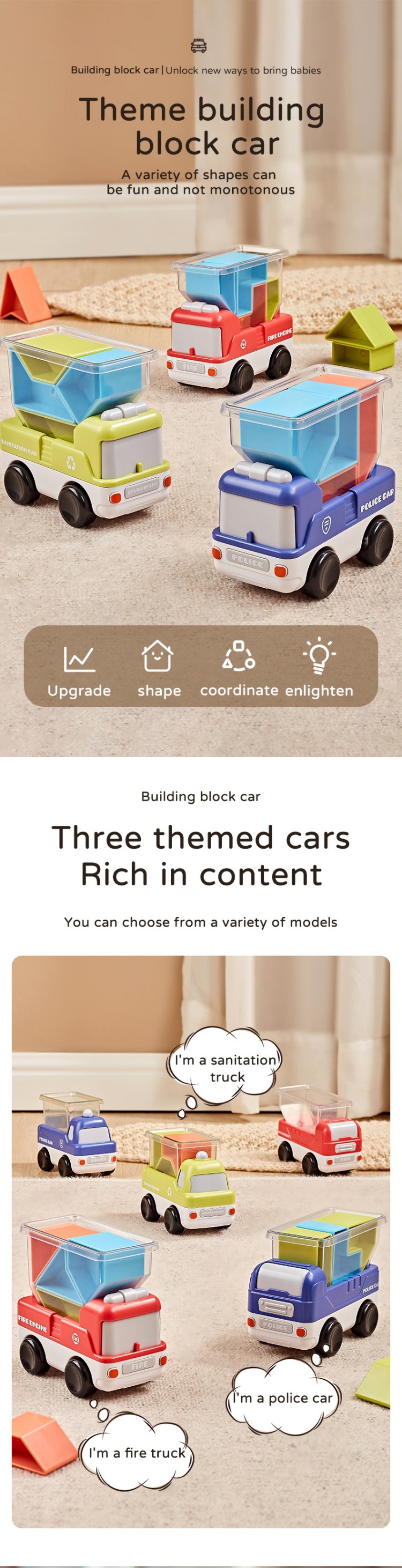 品名:消防车/警车/环卫主题积木装装乐玩具