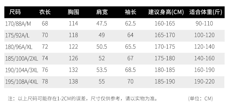 温馨提示:本店所售产品为厂家直发,发出的衣服均为白坯(无商标 无吊牌 简约包装)。