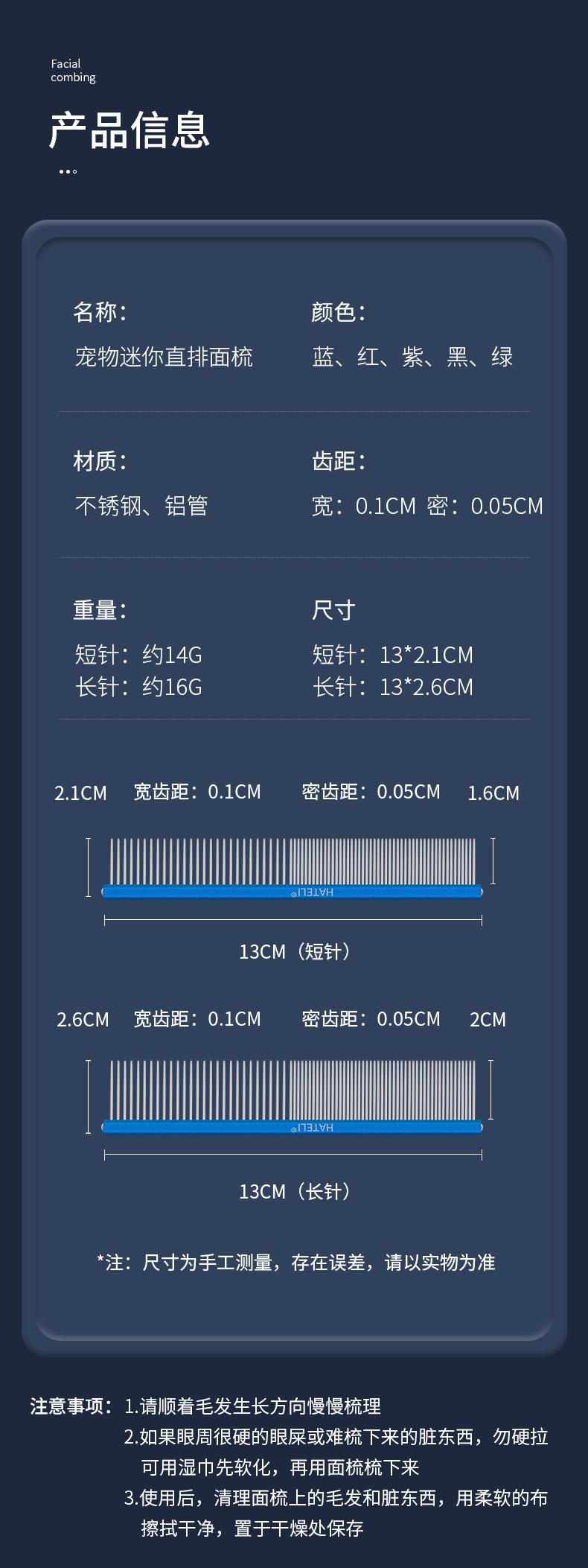 애완 동물 미니 행 빗 Marzis 개 입 머리 빗 얼굴 빗 13cm 얼굴 빗