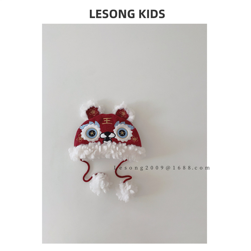 중국 새해 새 겨울 새해 봉제 모자 소년의 3 차원 귀 따뜻한 호랑이 머리 모자 아기 축제 모자