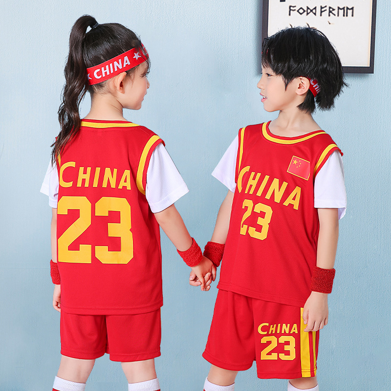 어린이 농구 세트 세트 소년 여름 반팔 가짜 투피스 저지 여름 속건 소녀 아기 스포츠 초등학교