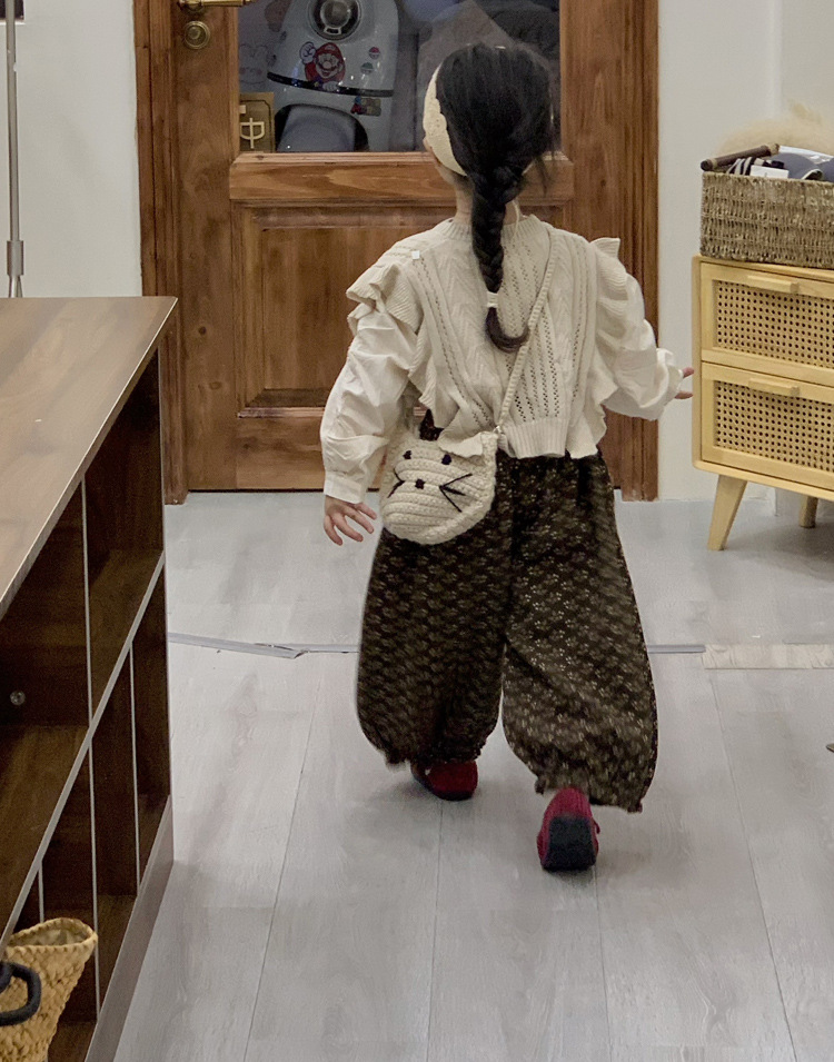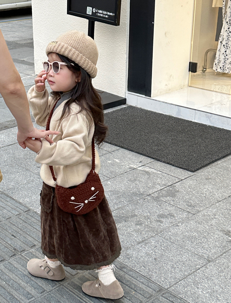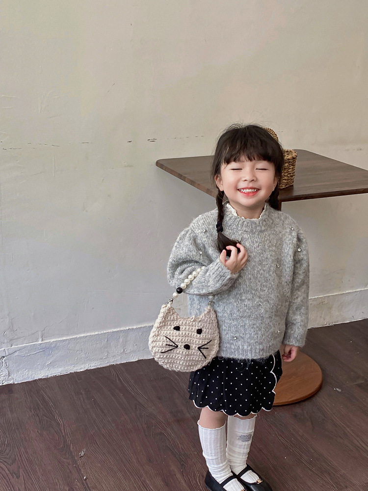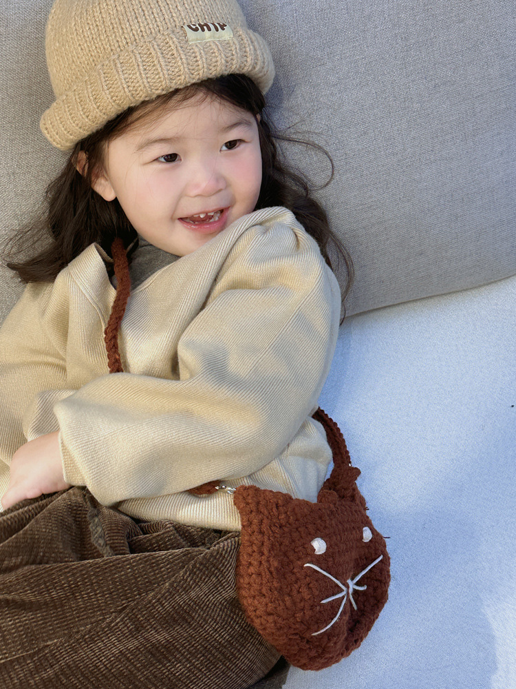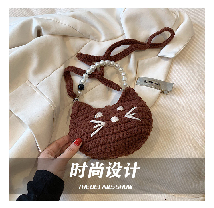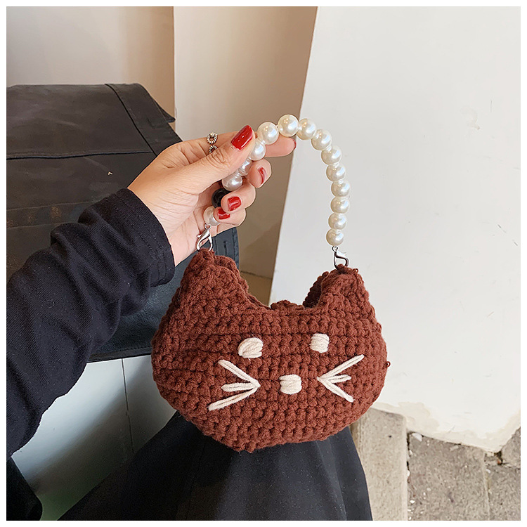 새로운 어린이 양모 뜨개질 고양이 가방 진주 휴대용 트렌드 대각선 액세서리 소녀 휴대 전화 가방 도매