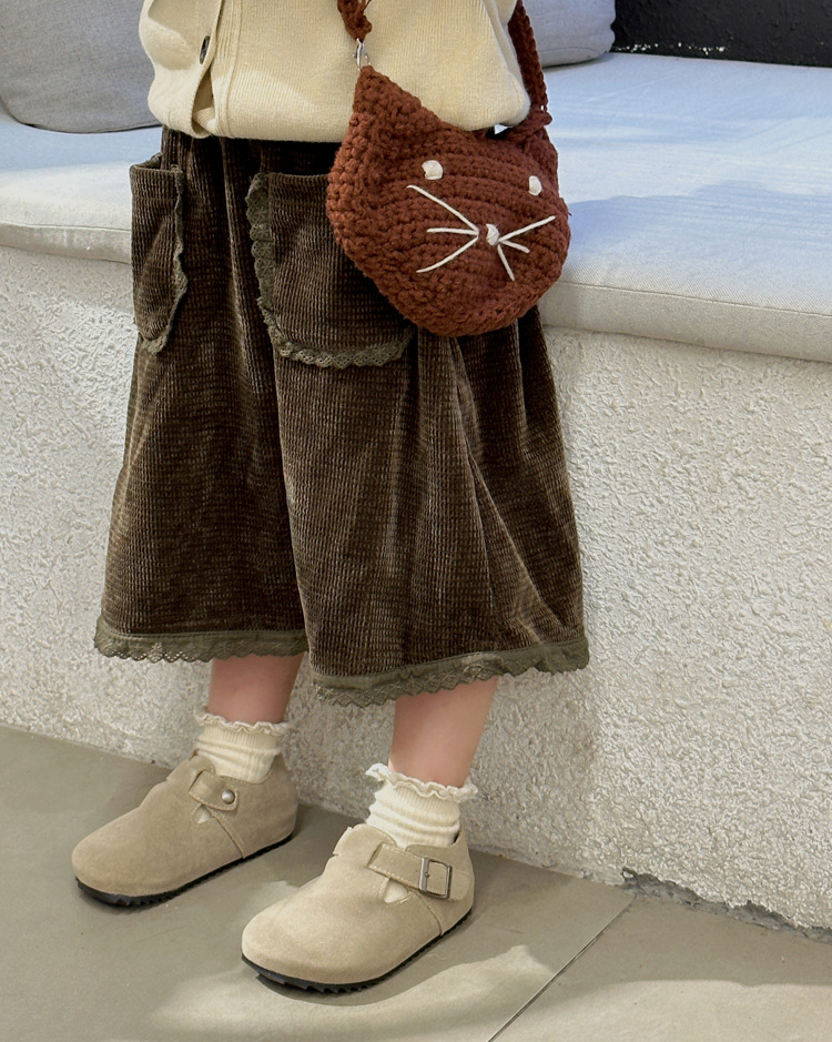 새로운 어린이 양모 뜨개질 고양이 가방 진주 휴대용 트렌드 대각선 액세서리 소녀 휴대 전화 가방 도매스토어 가기