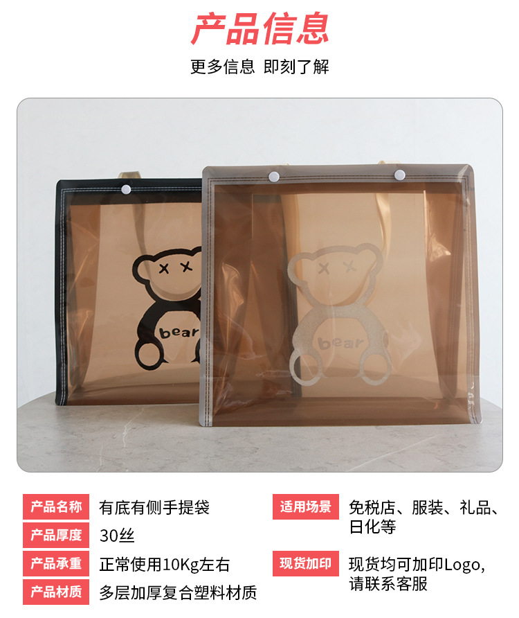 간단한 곰 기념품 옷 플라스틱 의류 매장 가방 핸드백 포장 가방 손 선물 가방 재고 있음스토어 가기