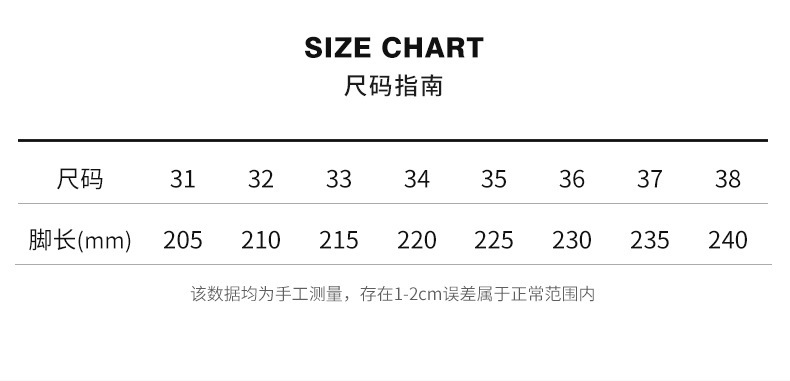| 包装尺寸 | 34.5cmX20cmX12cm(包装) | 重 量 | 约440g/双 | |