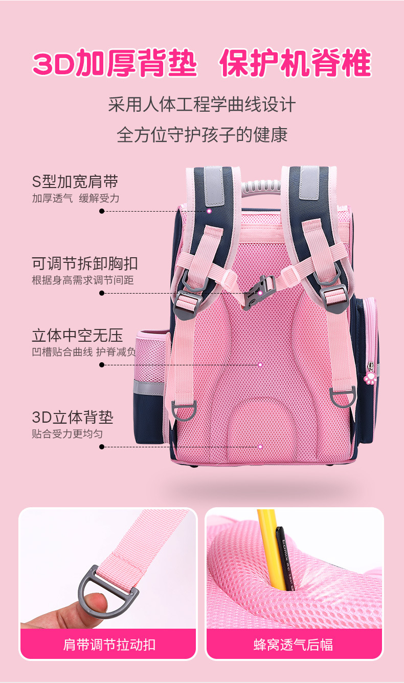 초등학교 스쿨백 여학생 1 학년, 2 학년, 3 학년 스쿨백 어린이 배낭 대용량 경량 배낭