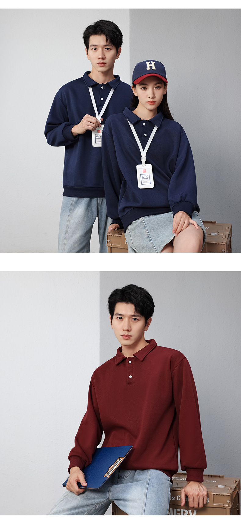 봄과 가을 옷깃 스웨트 셔츠 어깨 단색 바느질 느슨한 두꺼운 도매 맞춤형 자수 인쇄 로고 작업 옷스토어 가기