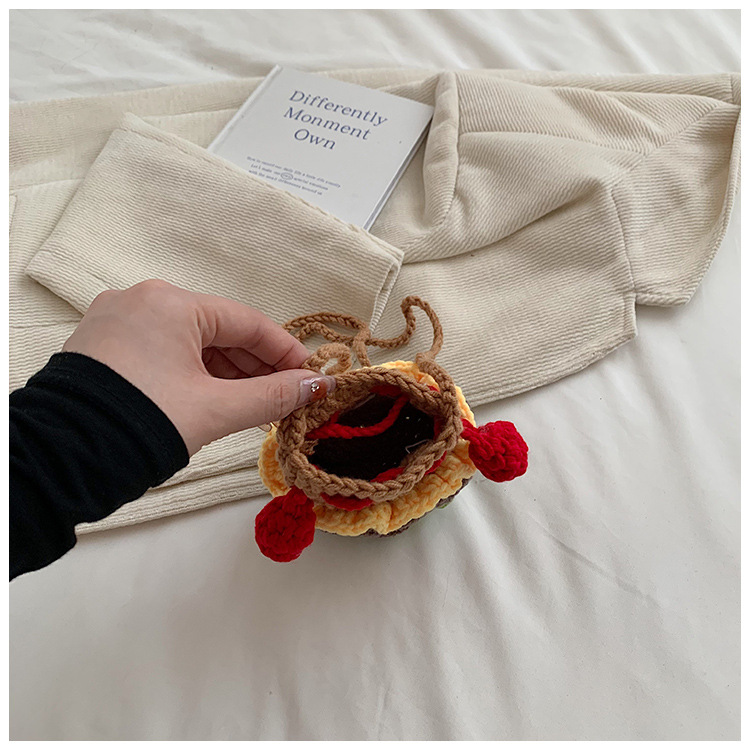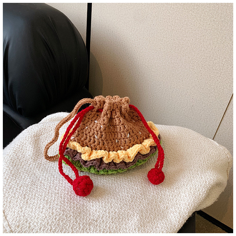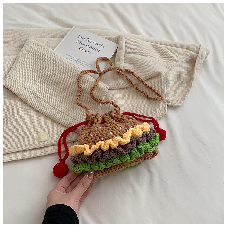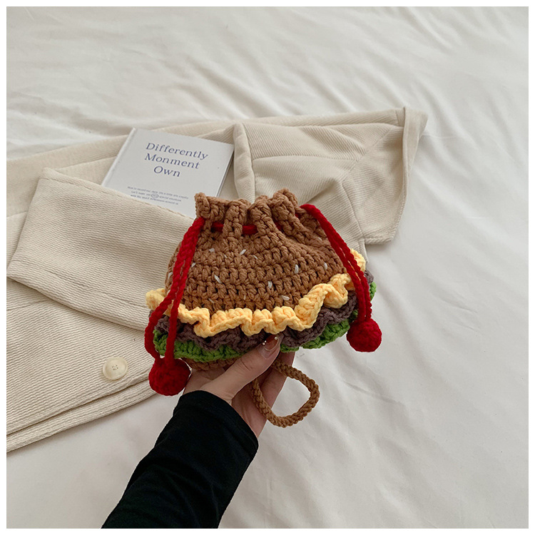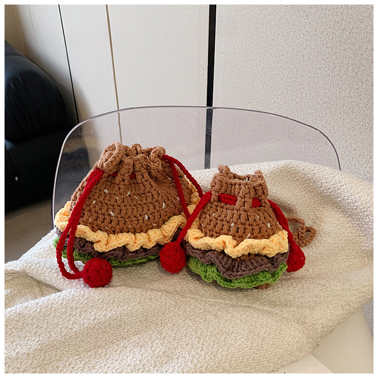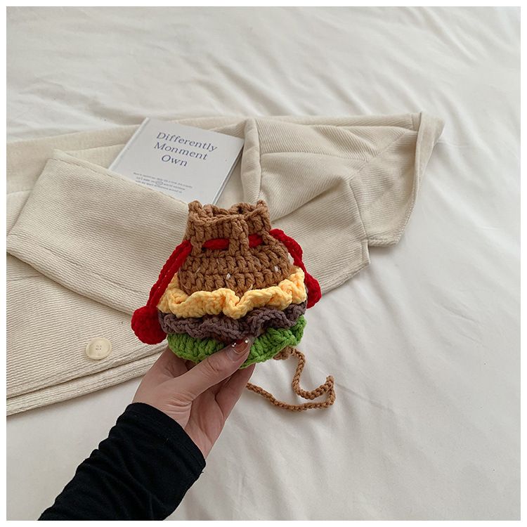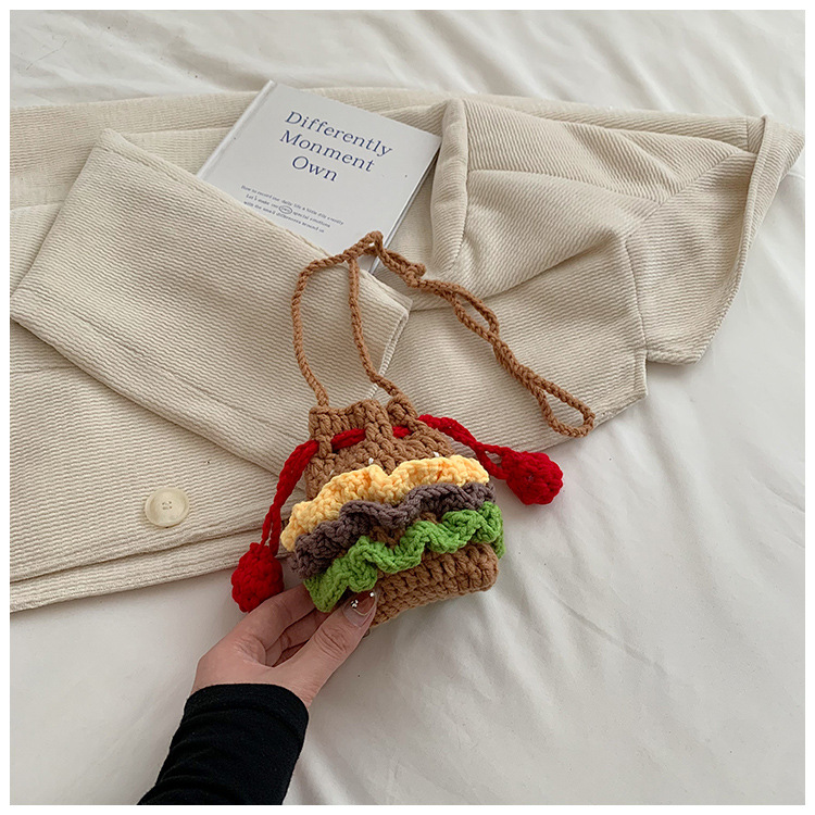 작은 빨간 승마 책 같은 햄버거 울 완성 된 가방 손으로 짠 베젤 헤드셋 레드 백 어린이 크로스 바디 백