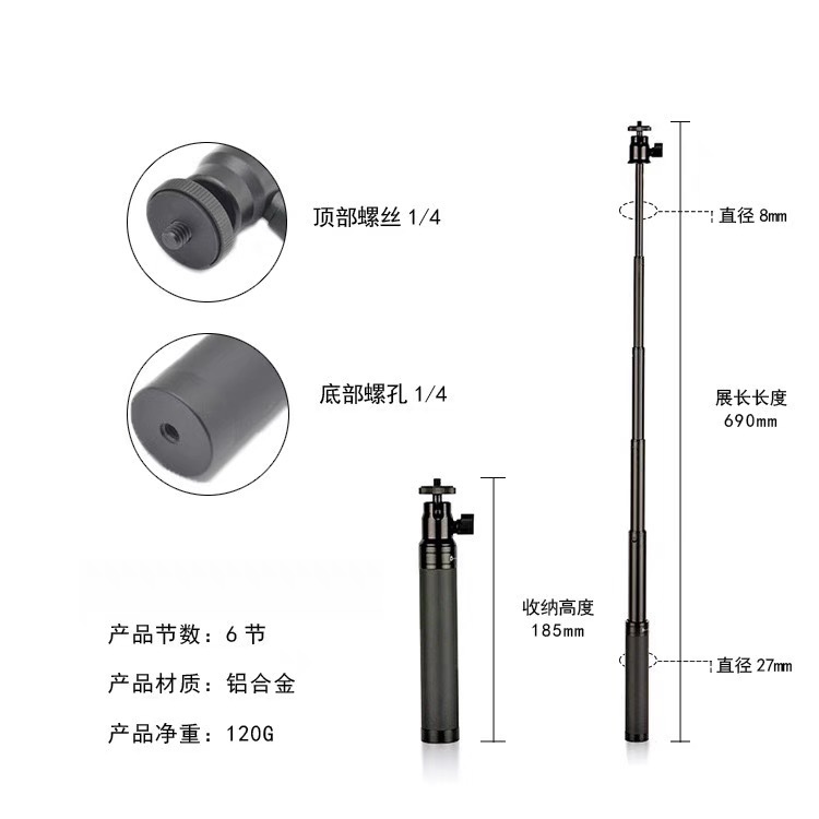 Feiyu 확장로드 Dajiang Vast 휴대 전화 안정제 유니버설 셀카 스틱 스포츠 카메라 gopro13 핸드 헬드 로드
