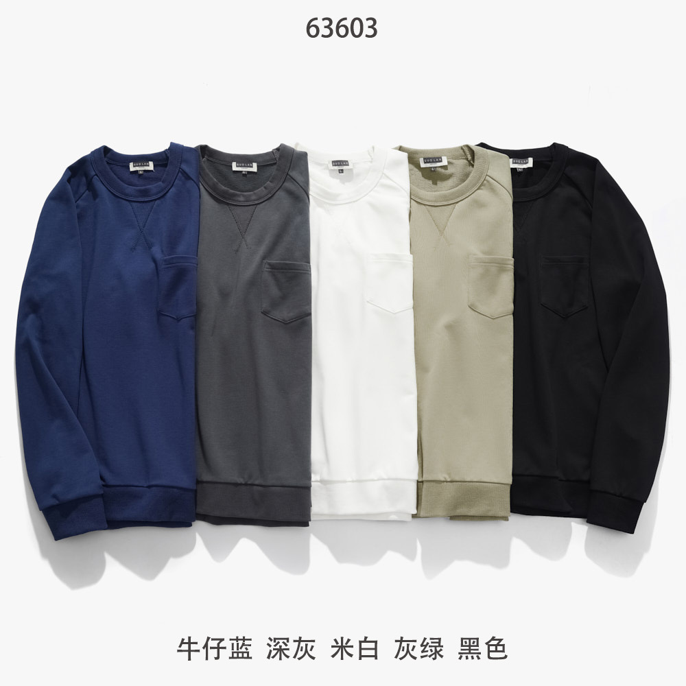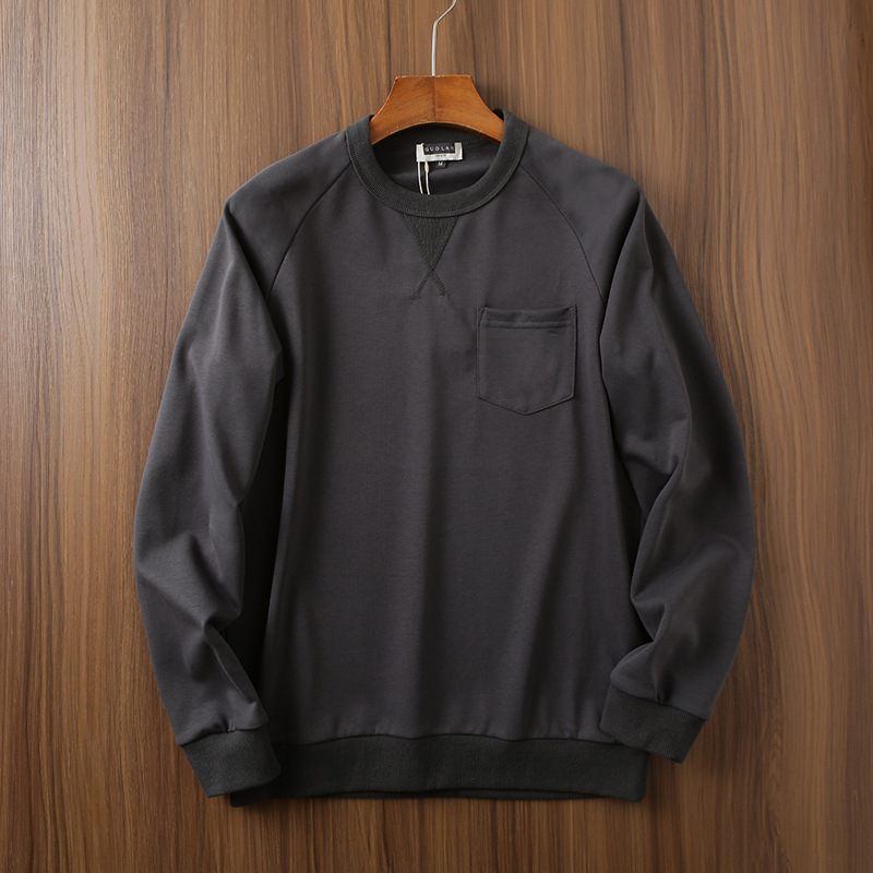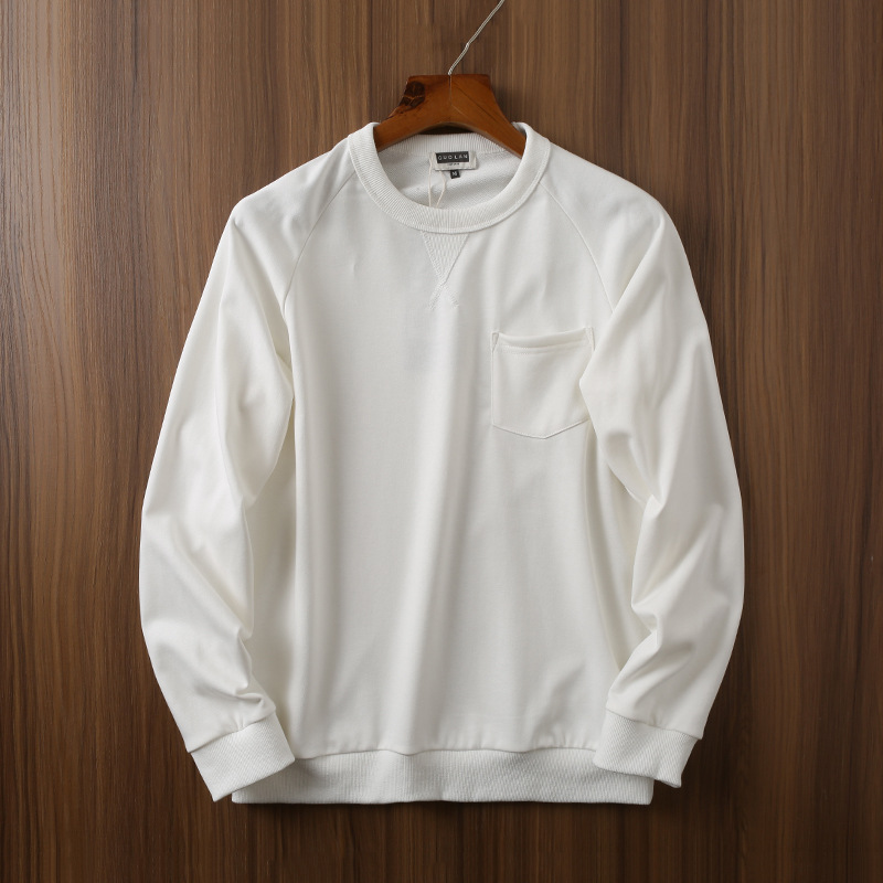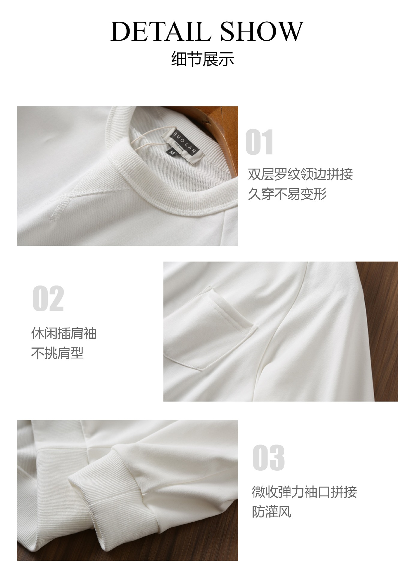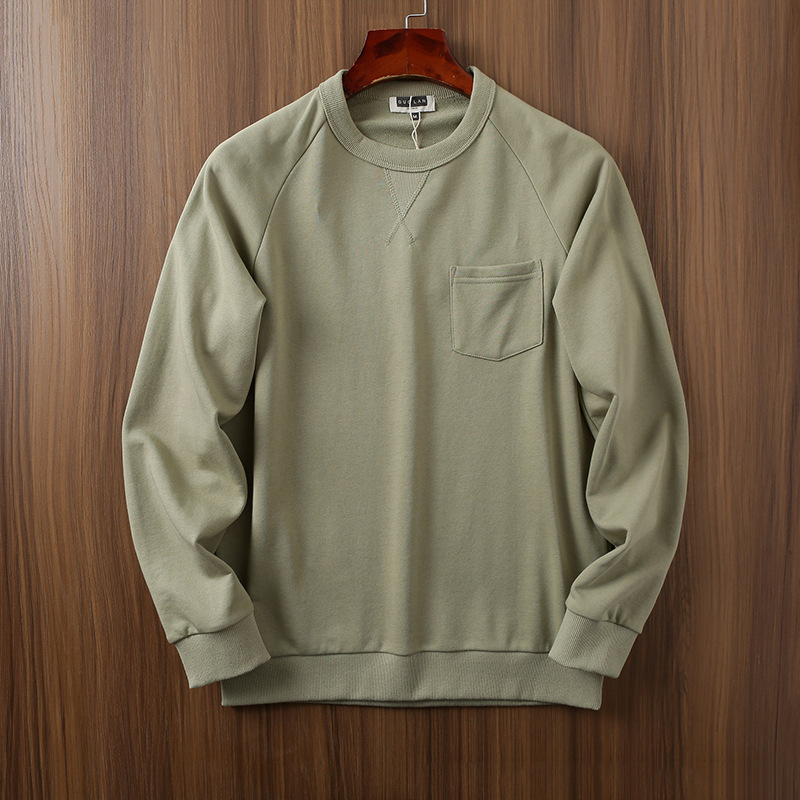 편안한 혼 소매 가을 단색 캐주얼 모든 매치 라운드 넥 풀오버 스웨터 피부 친화적 인 통기성 느슨한 면 느슨한 남성스토어 가기