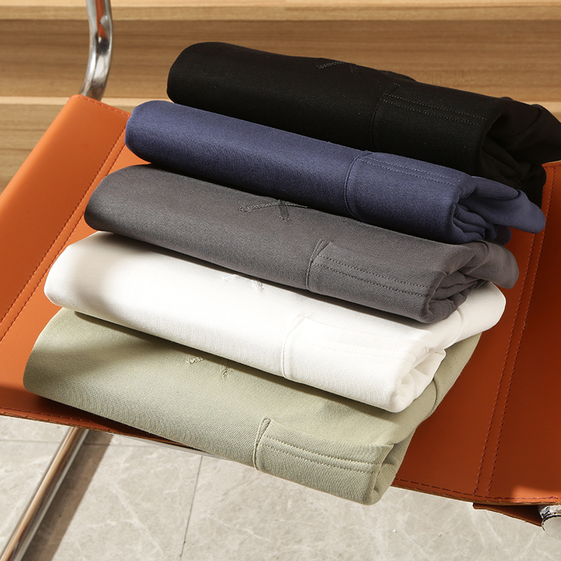 편안한 혼 소매 가을 단색 캐주얼 모든 매치 라운드 넥 풀오버 스웨터 피부 친화적 인 통기성 느슨한 면 느슨한 남성