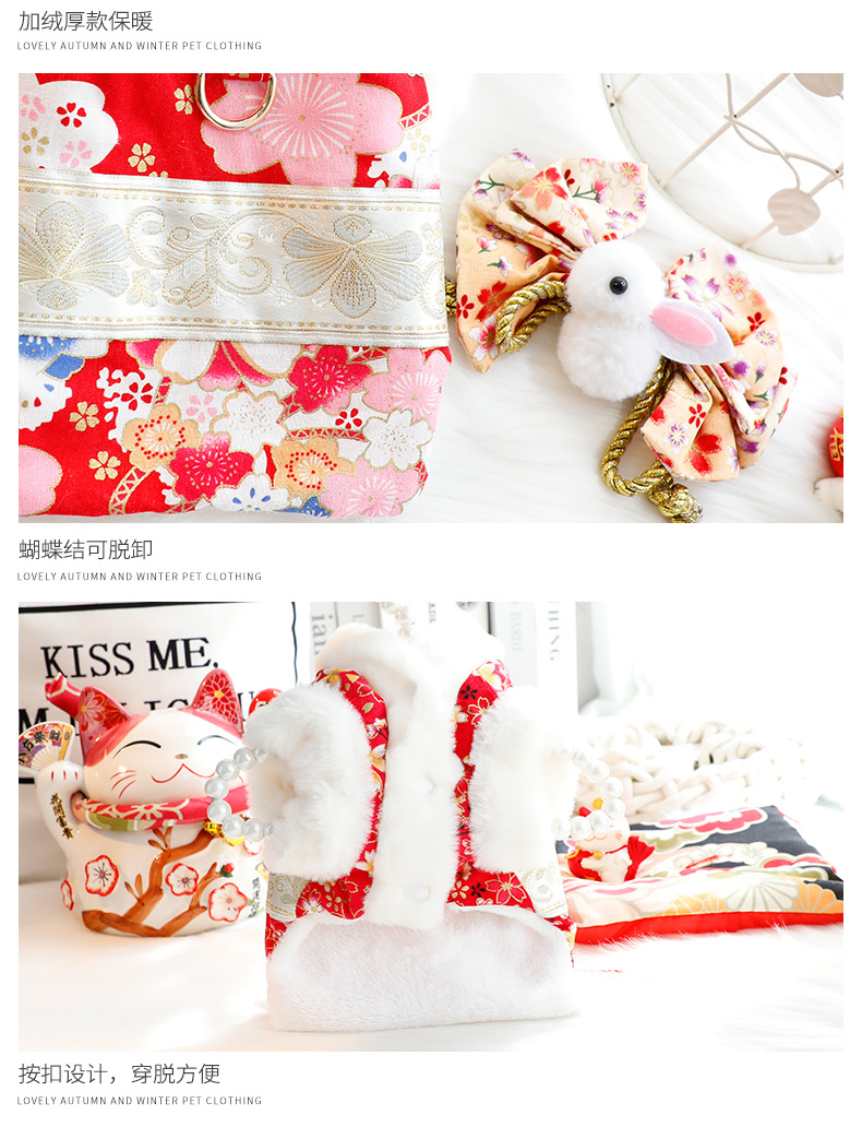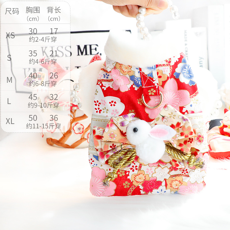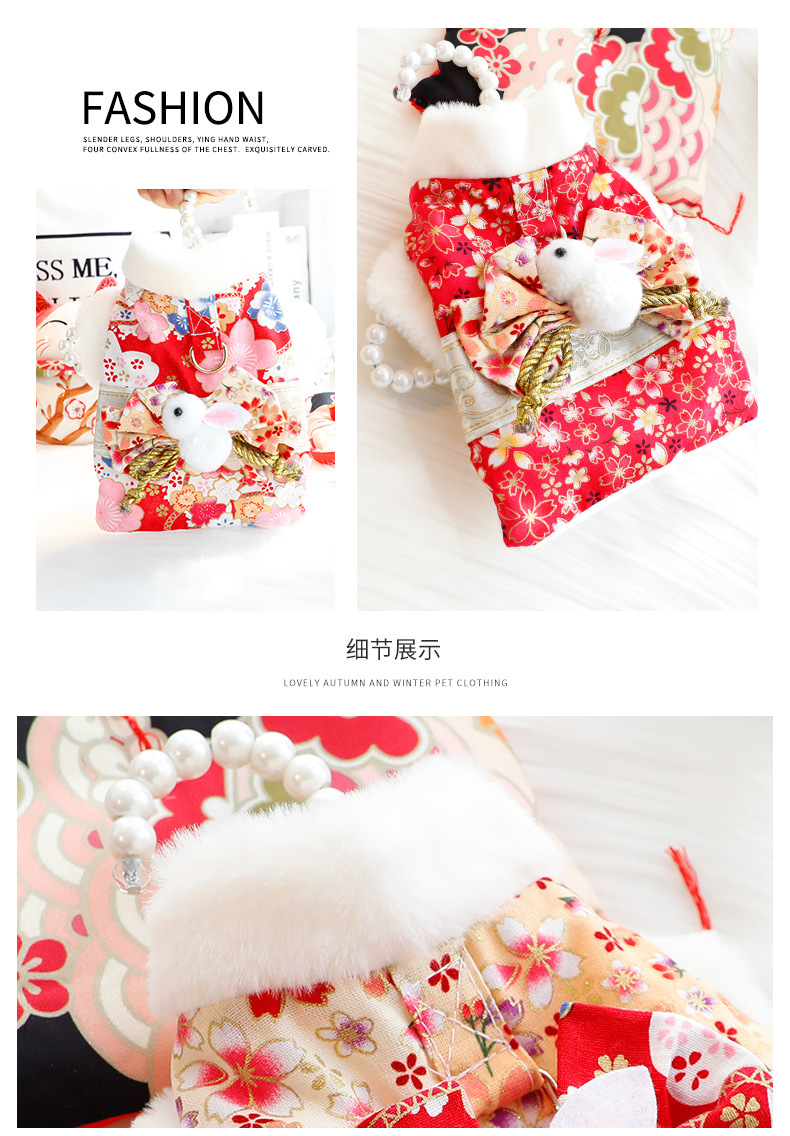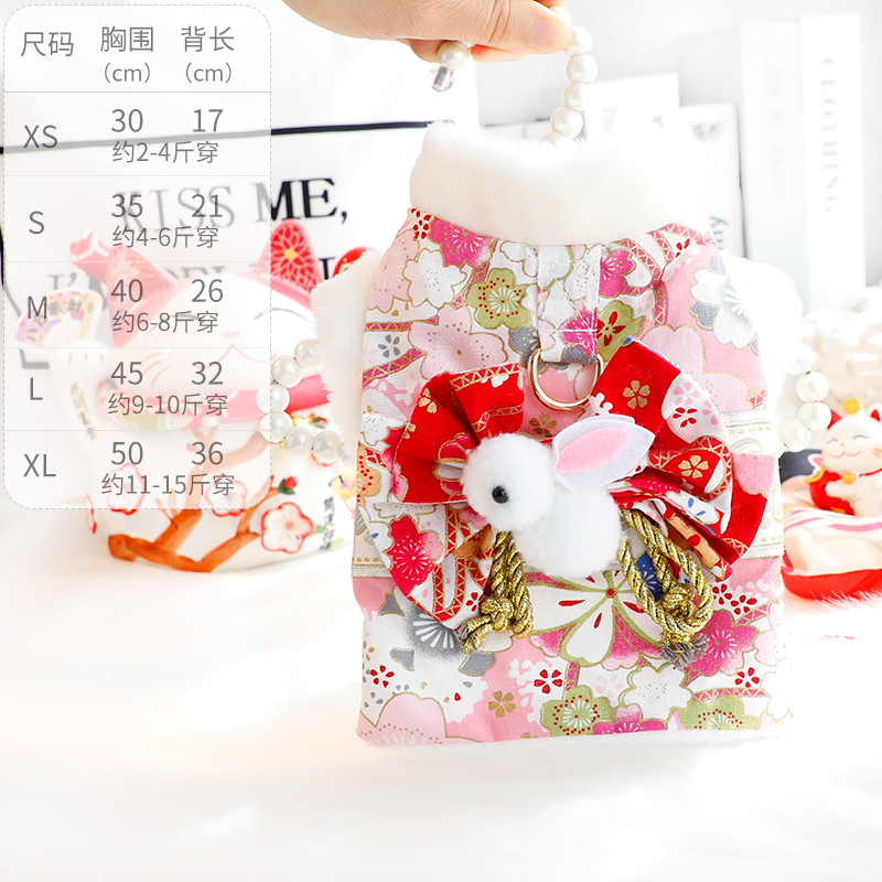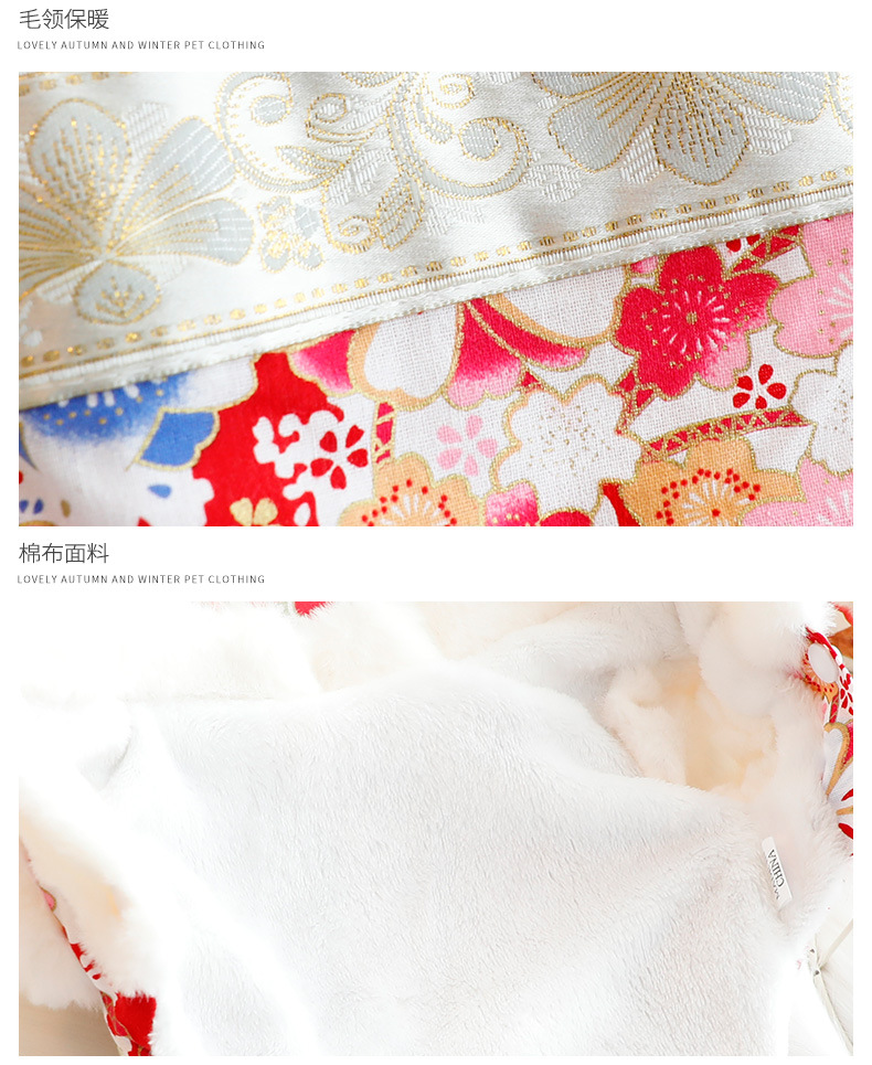 개 옷 가을과 겨울 옷 두꺼운 고양이 공주 로맨틱 벚꽃 기모노 면 패딩 옷 작은 개 테디 애완 동물 5389