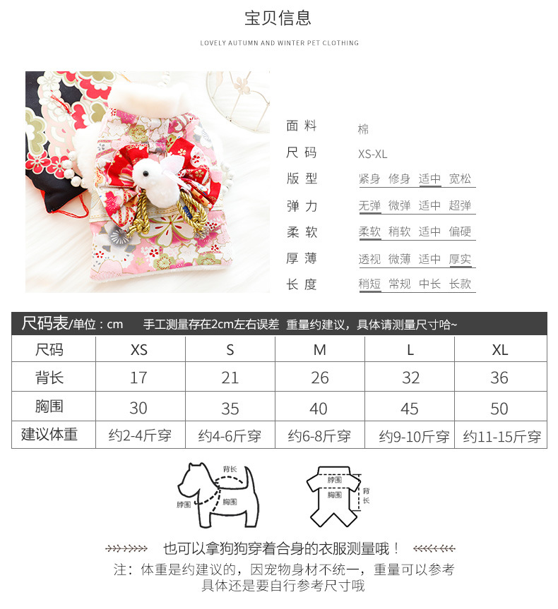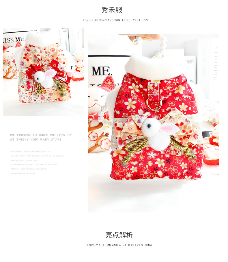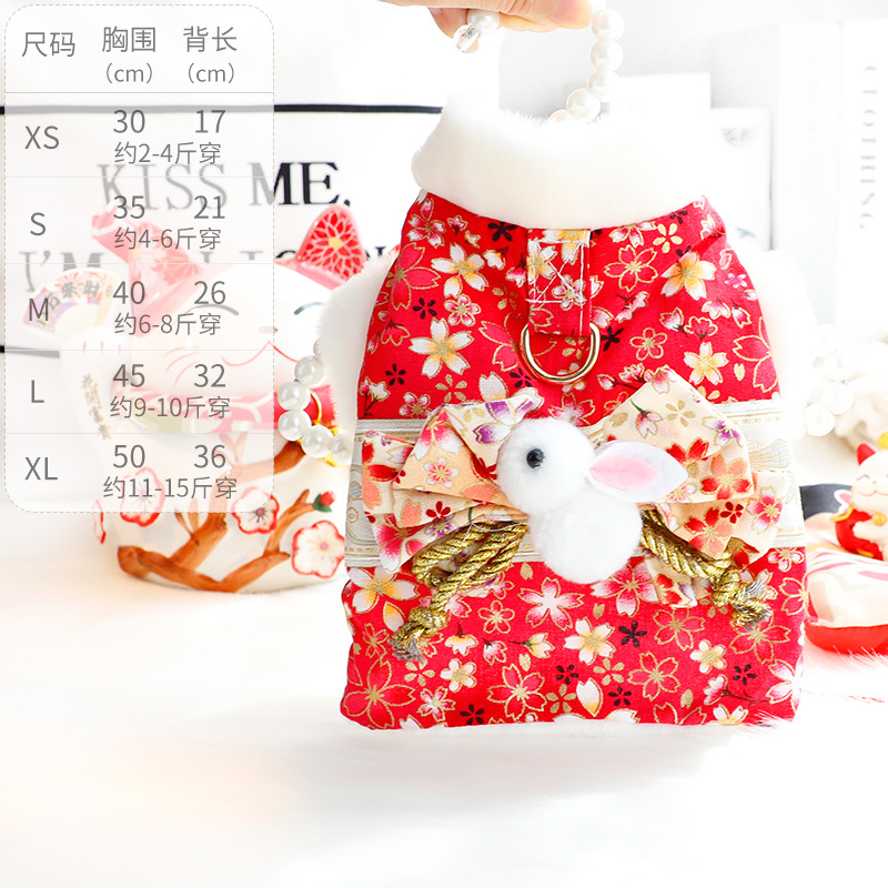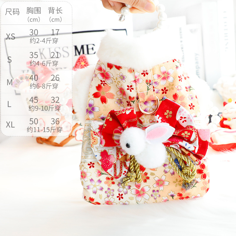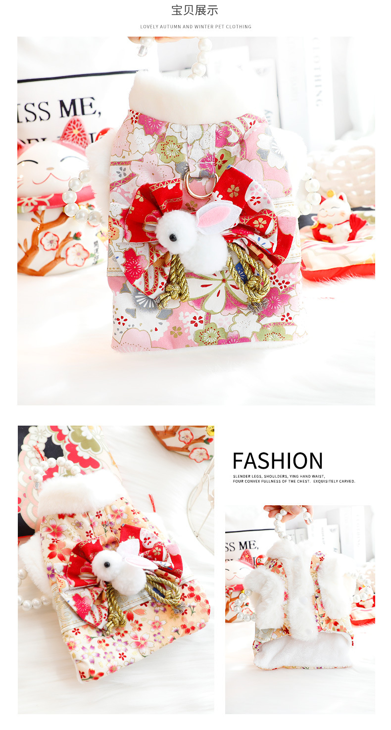 개 옷 가을과 겨울 옷 두꺼운 고양이 공주 로맨틱 벚꽃 기모노 면 패딩 옷 작은 개 테디 애완 동물 5389