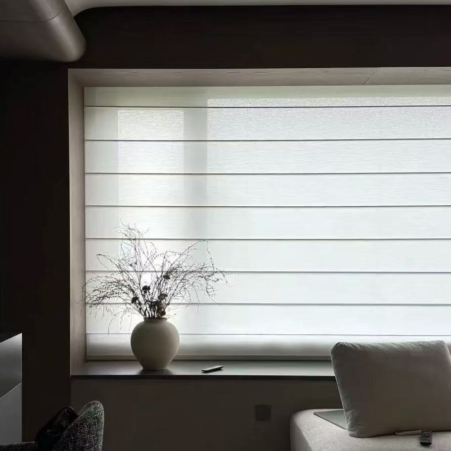 로만 블라인드 맞춤형 중간 린넨 커튼 찻집 B&B 룸 커튼 로그 스타일 거실 롤러 블라인드 커튼 전기로 작동 가능
