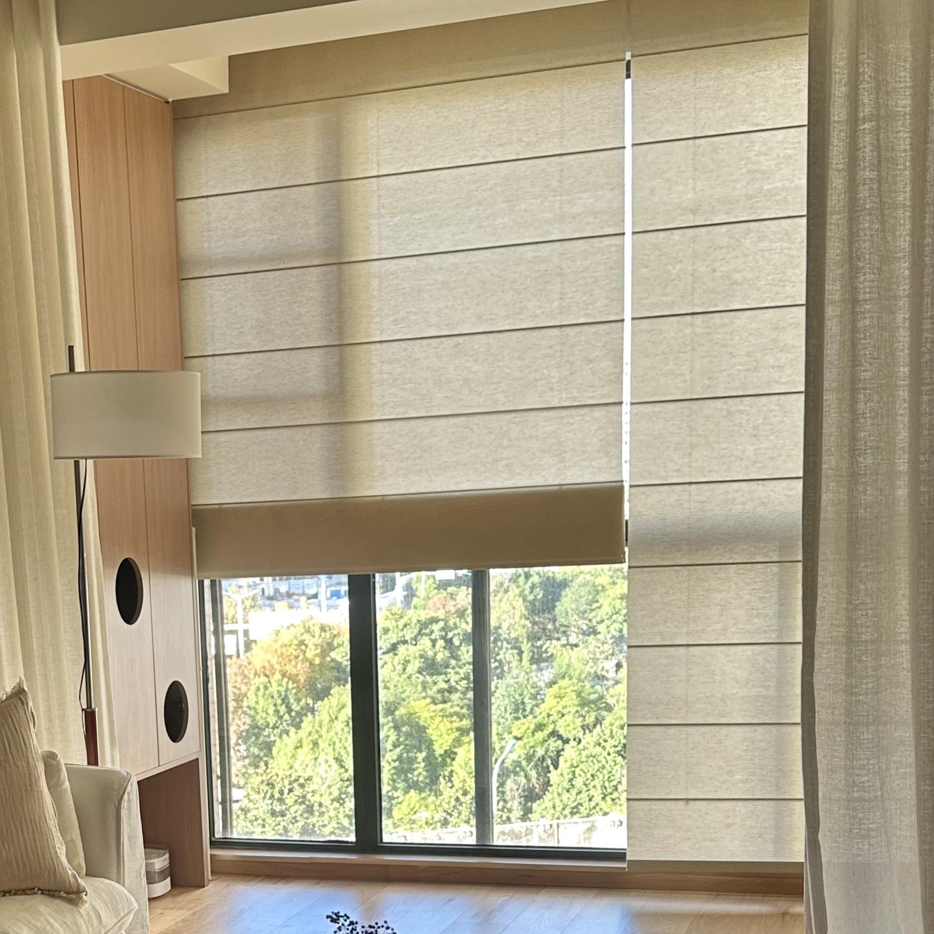 로만 블라인드 맞춤형 중간 린넨 커튼 찻집 B&B 룸 커튼 로그 스타일 거실 롤러 블라인드 커튼 전기로 작동 가능스토어 가기