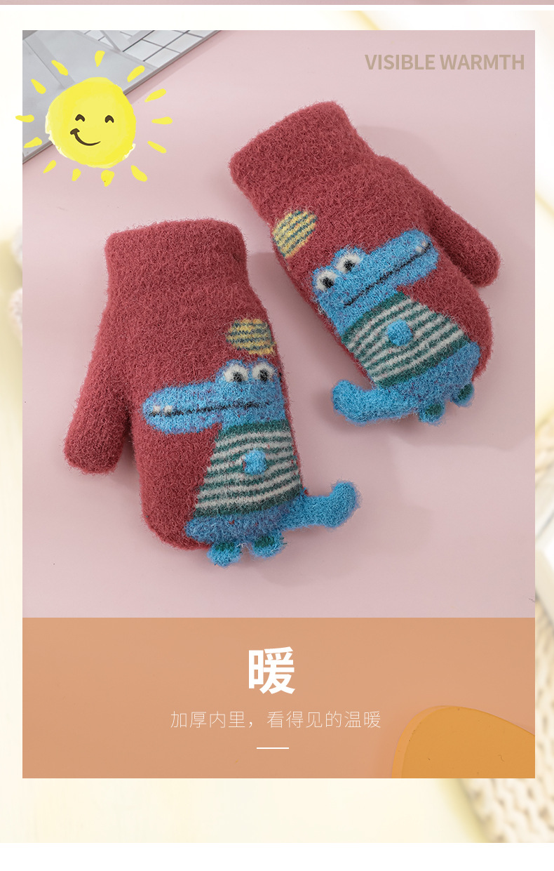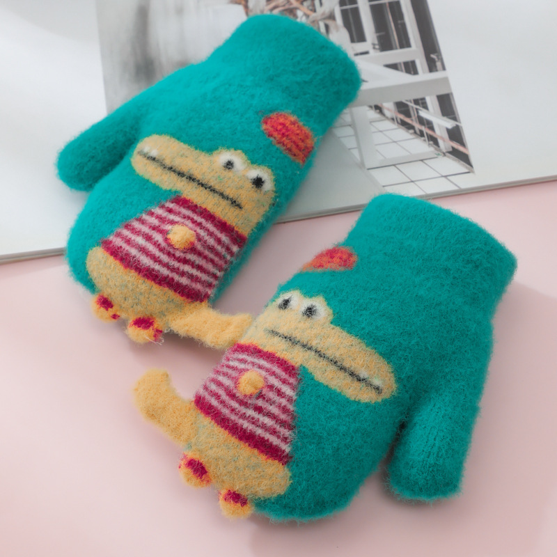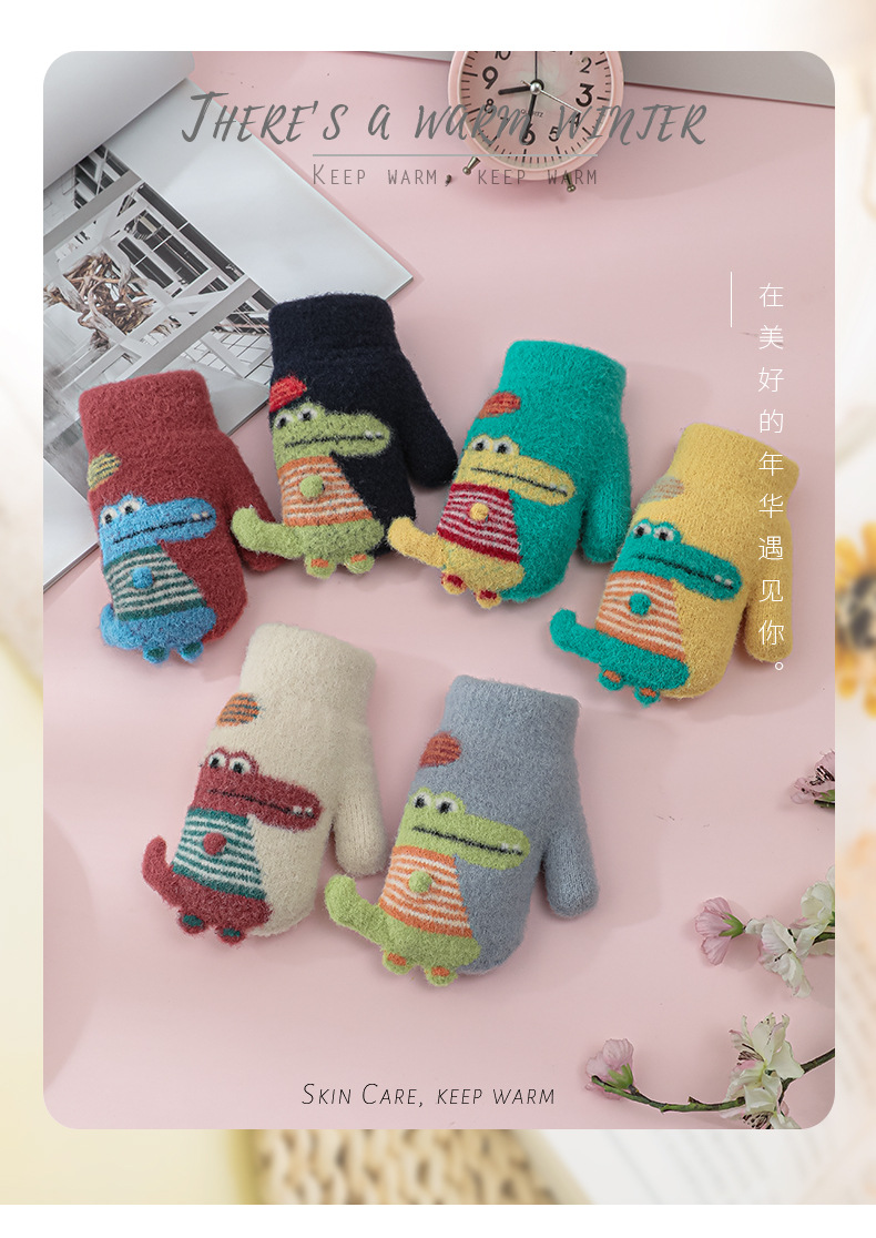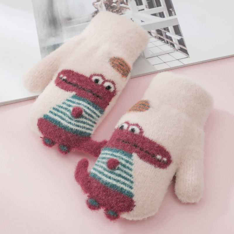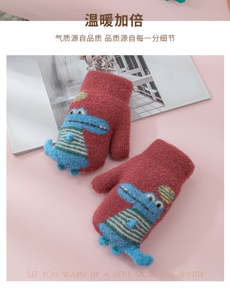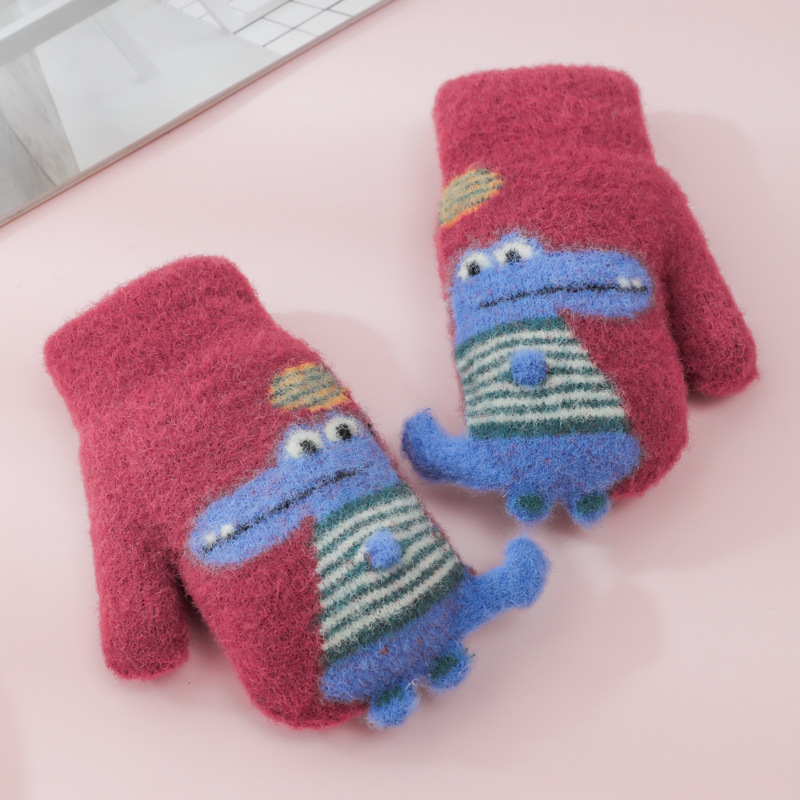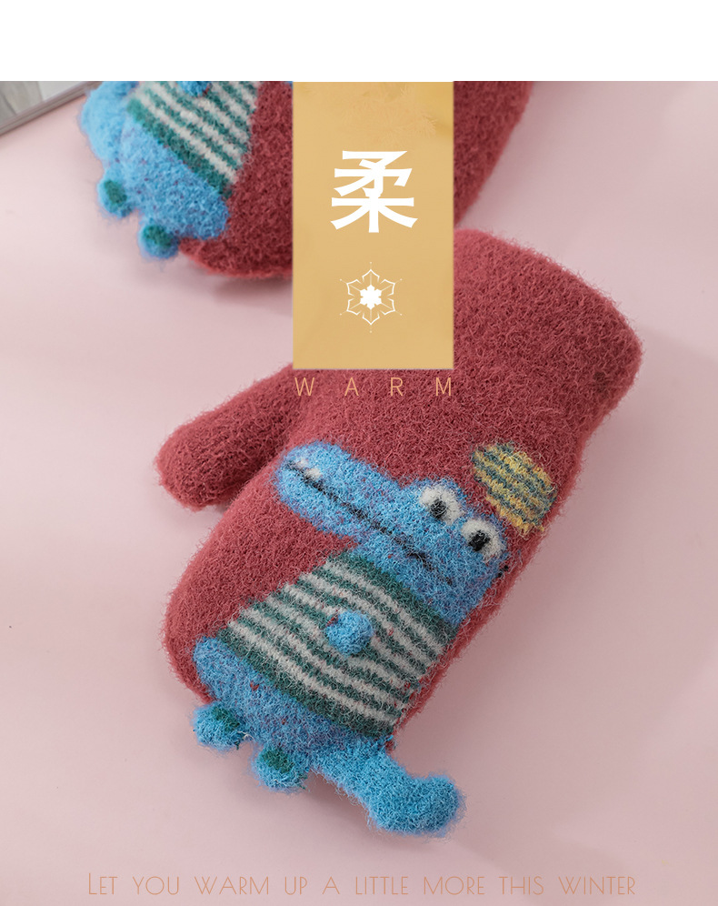 어린이 공룡 가방 손가락 장갑 겨울 소년 소녀 학교 두꺼운 기모 아이 따뜻한 사이클링 두꺼운 손가락