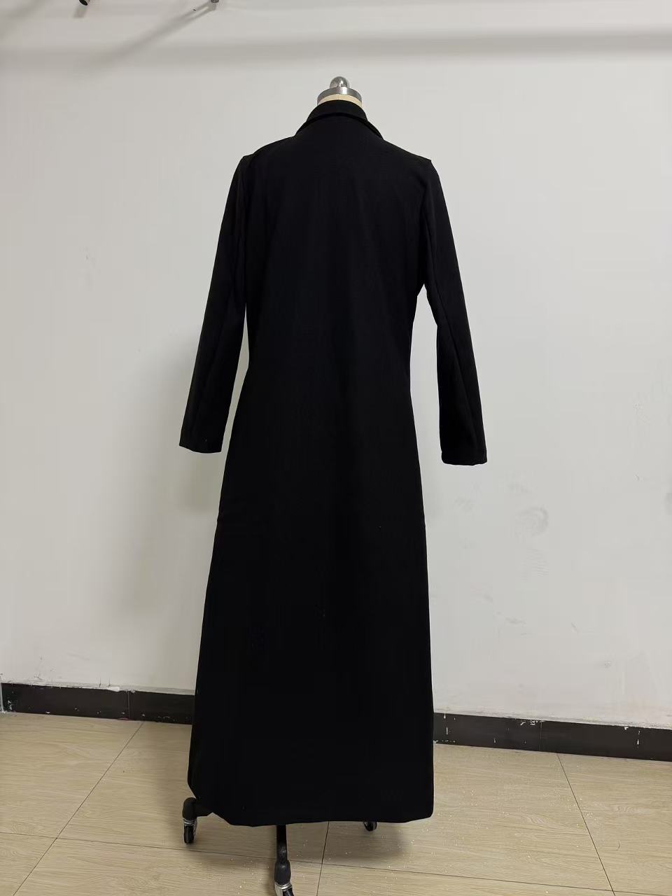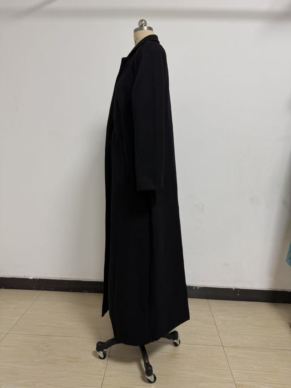 2025 가을 겨울 유럽, 미국, 중동 크로스보더 여성복 아마존 캐주얼 롱 솔리드 컬러 따뜻한 모직 코트