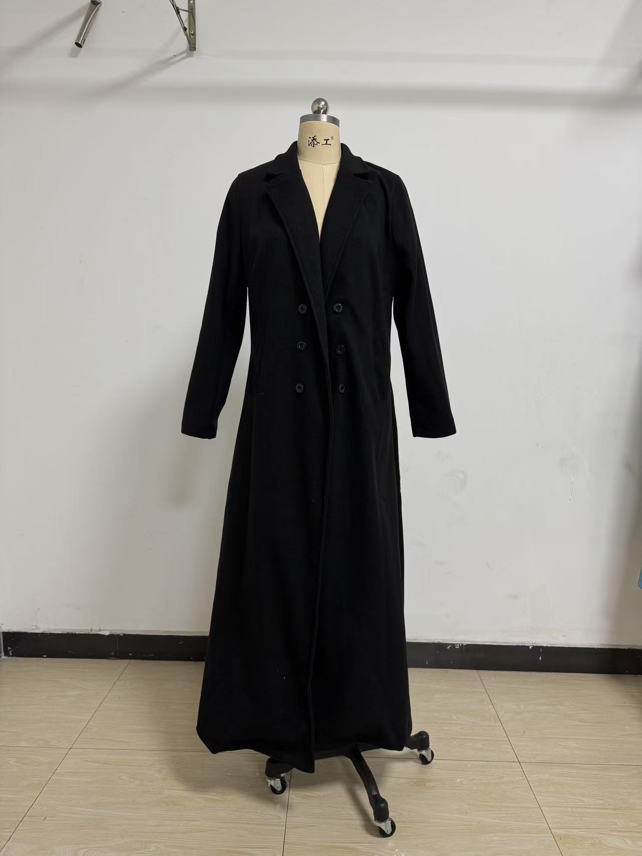 2025 가을 겨울 유럽, 미국, 중동 크로스보더 여성복 아마존 캐주얼 롱 솔리드 컬러 따뜻한 모직 코트스토어 가기