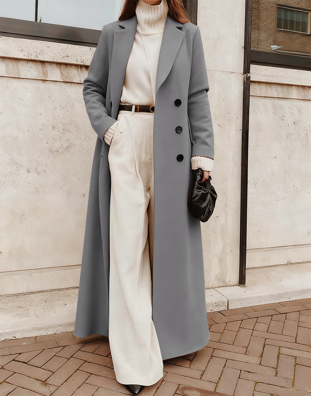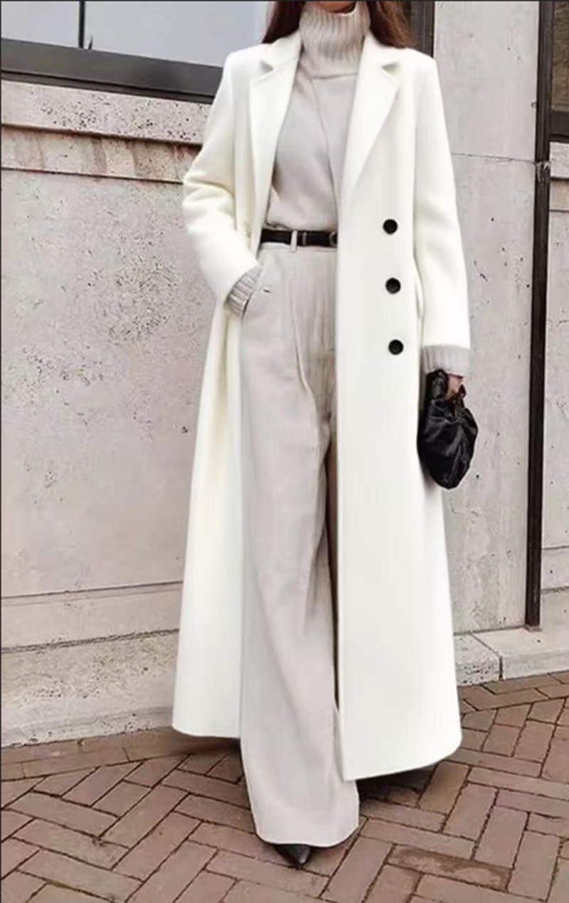 2026 가을 겨울 유럽, 미국, 중동 크로스보더 여성복 아마존 캐주얼 롱 솔리드 컬러 따뜻한 모직 코트스토어 가기