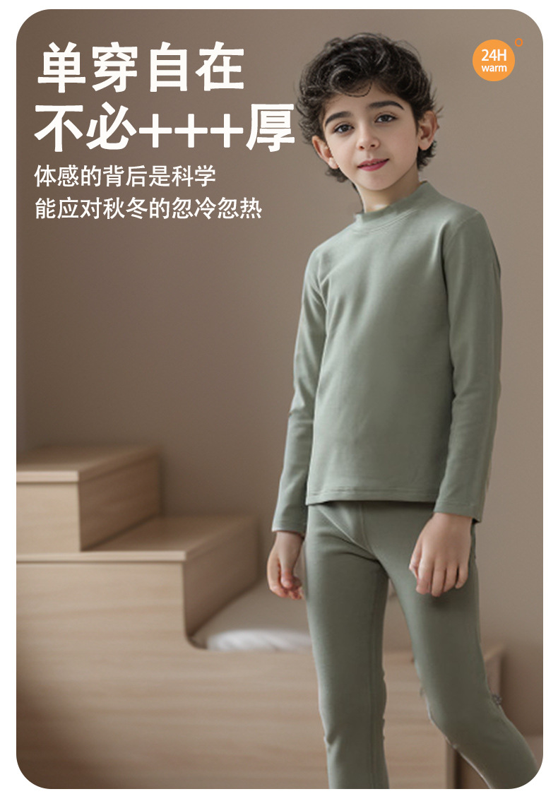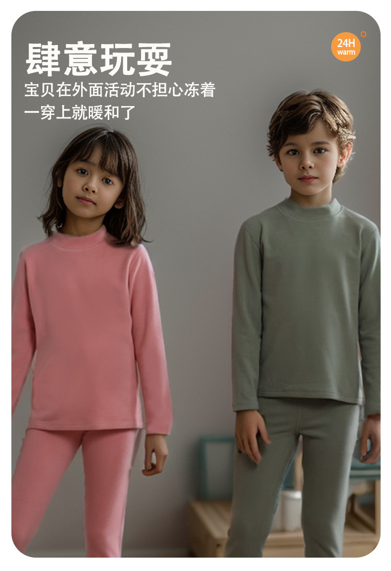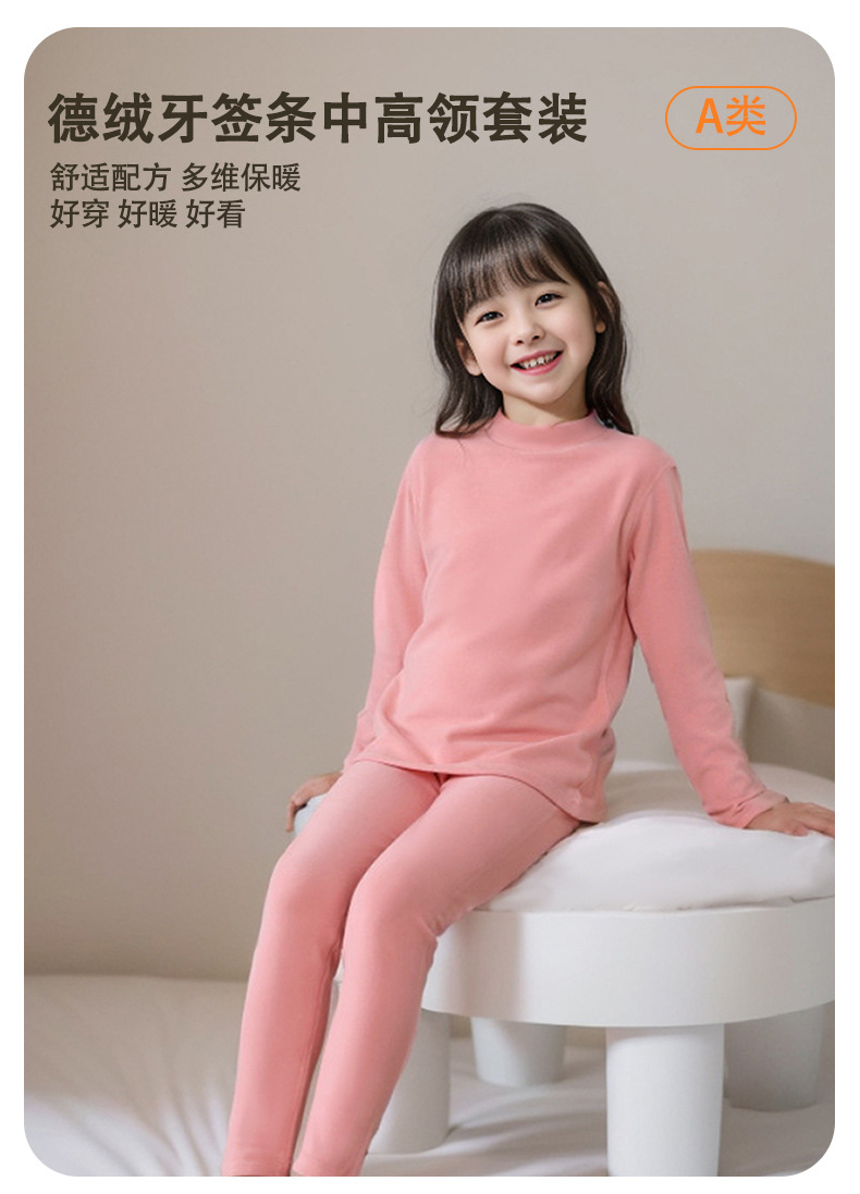 어린이용 독일산 보온 내의 세트, 여아용 중간 길이 카라 플리스 안감 가을옷과 가을바지, 남아용 두꺼운 베이스 레이어스토어 가기