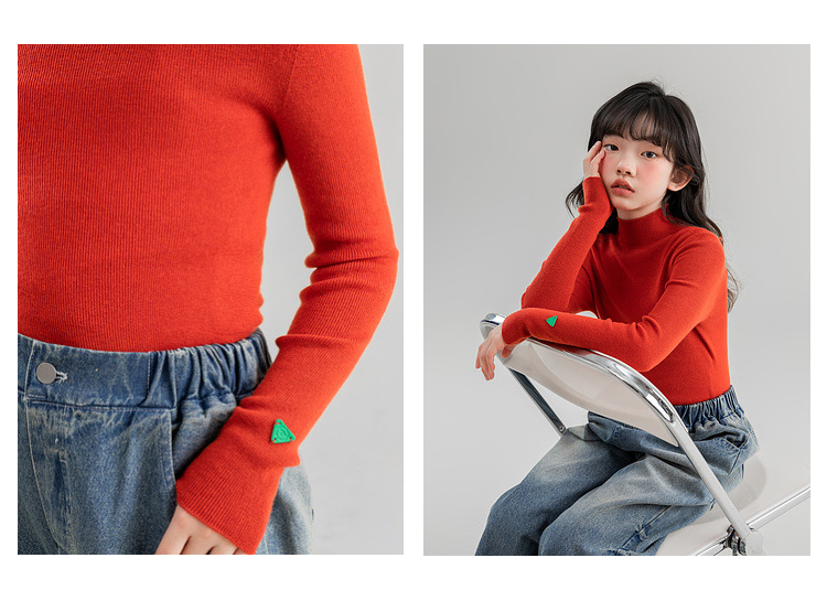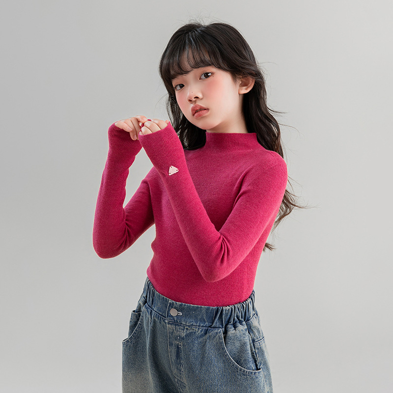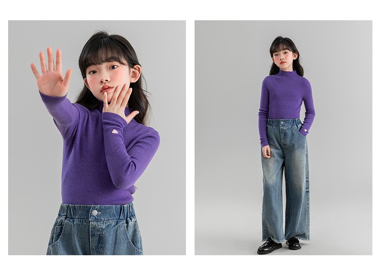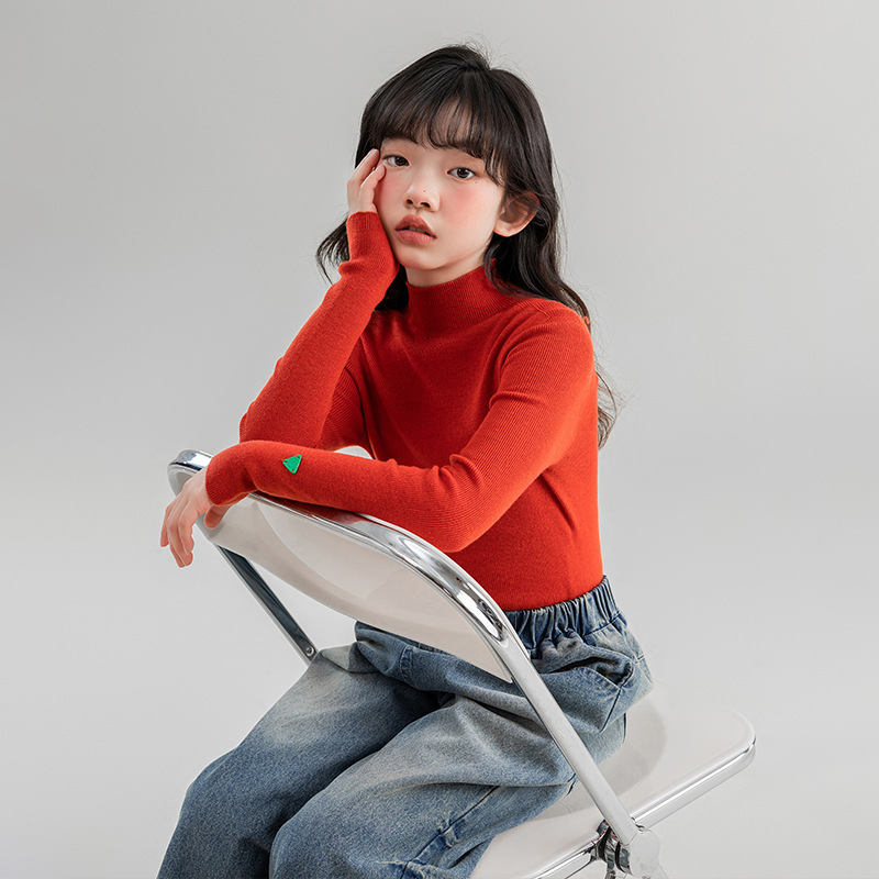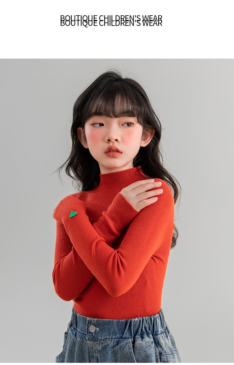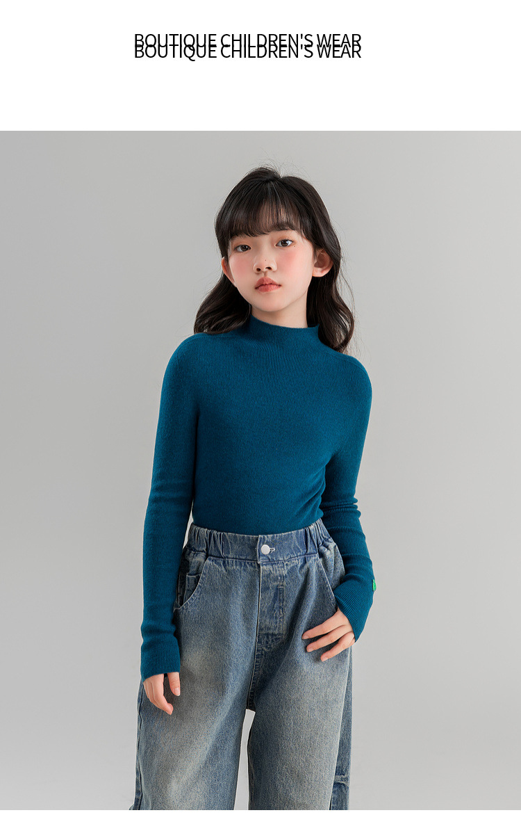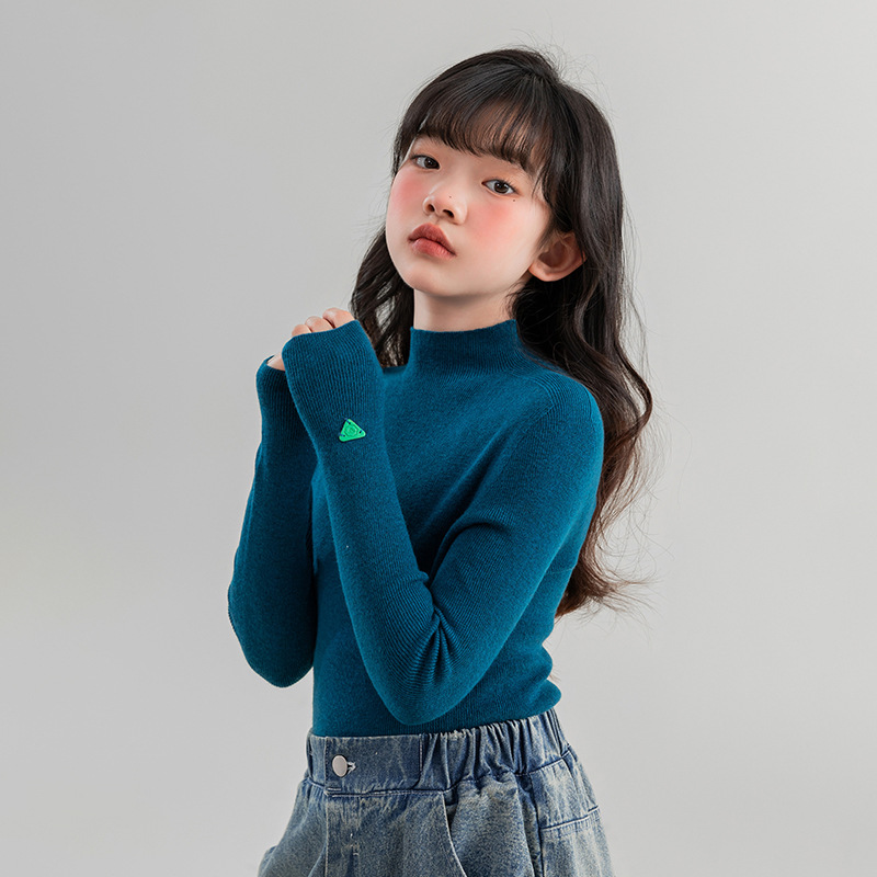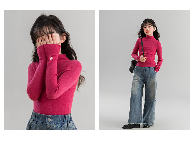 여아 스웨터 2023 새로운 어린이 가을과 겨울 두꺼운 따뜻한 겨울 착용 어린이 겨울 하이 칼라 슬림 핏 스웨터
