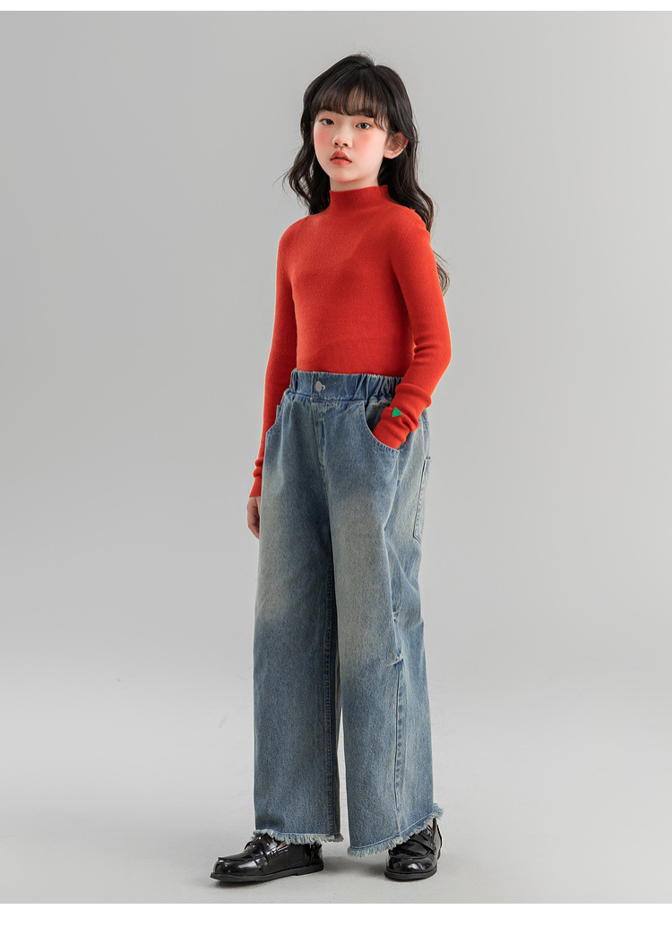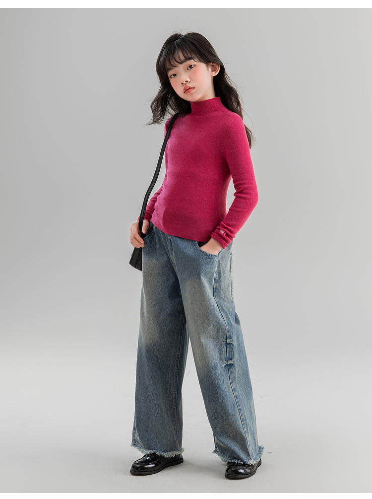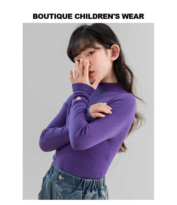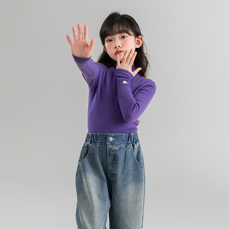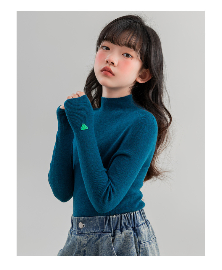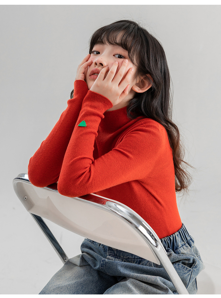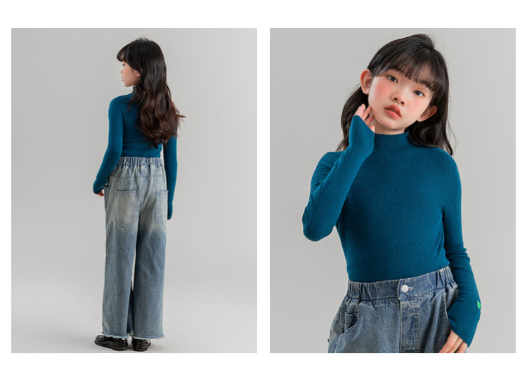 여아 스웨터 2023 새로운 어린이 가을과 겨울 두꺼운 따뜻한 겨울 착용 어린이 겨울 하이 칼라 슬림 핏 스웨터
