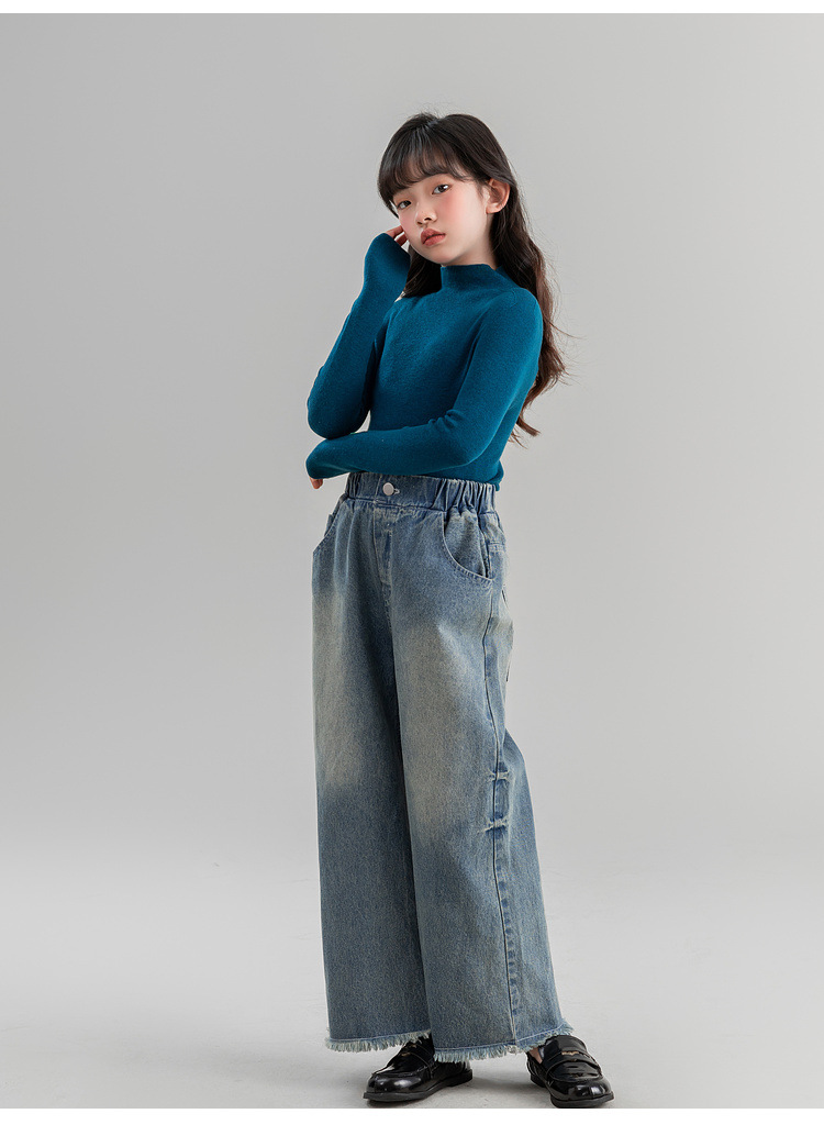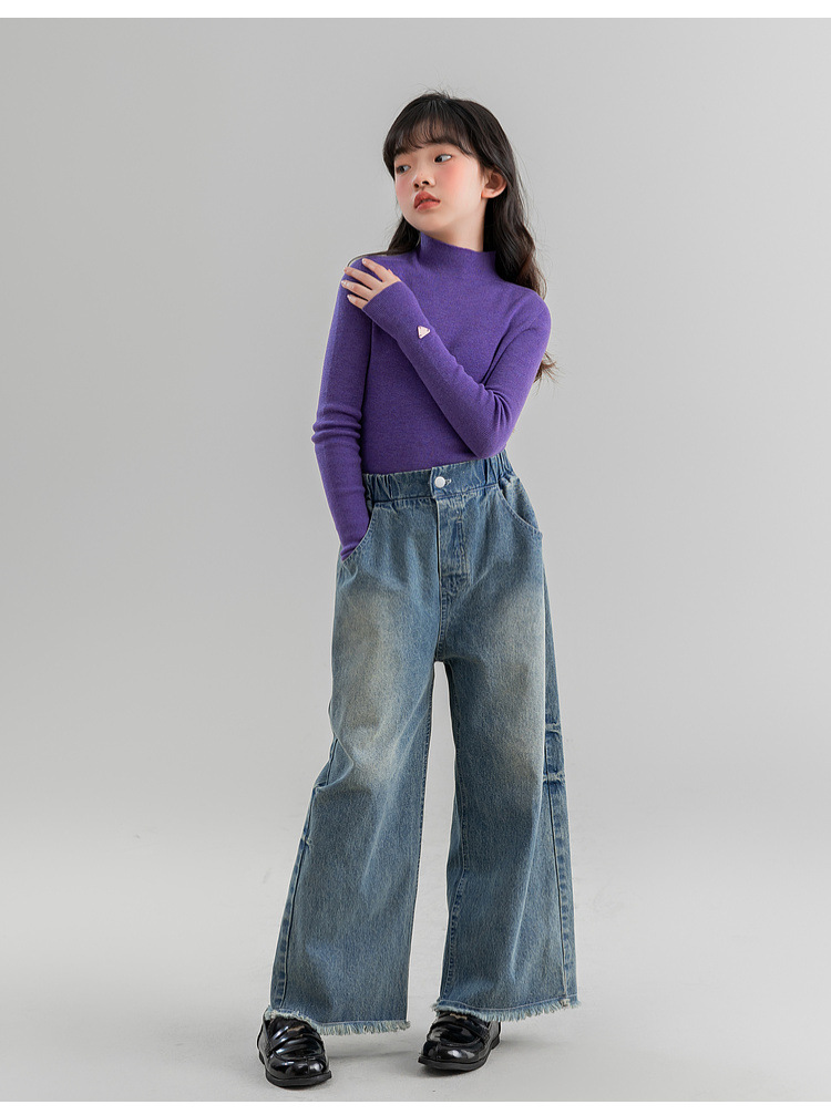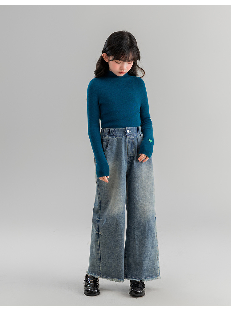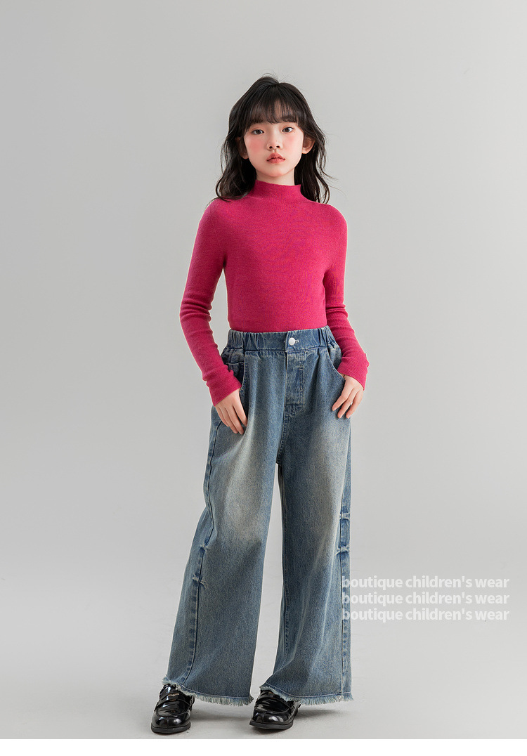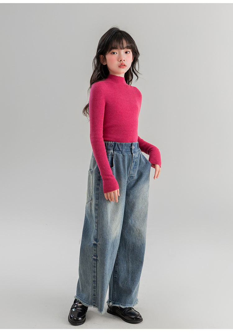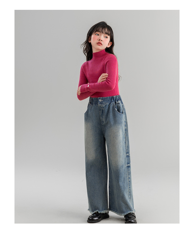 여아 스웨터 2023 새로운 어린이 가을과 겨울 두꺼운 따뜻한 겨울 착용 어린이 겨울 하이 칼라 슬림 핏 스웨터