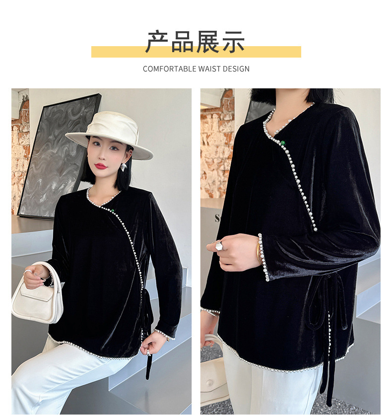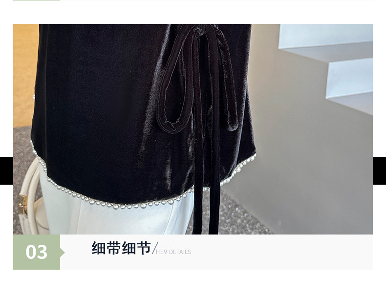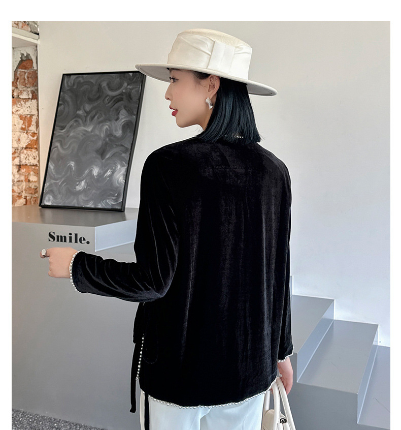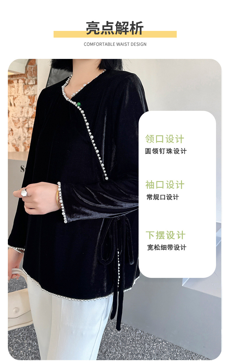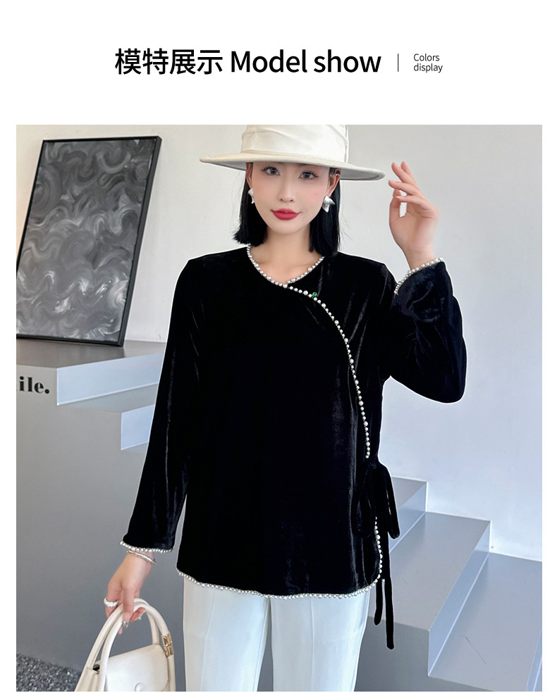 리얼 샷 블랙 벨벳 중국 탑 레트로 여성 2023 가을 새로운 패션 서양식 긴 소매 페르시 셔츠스토어 가기