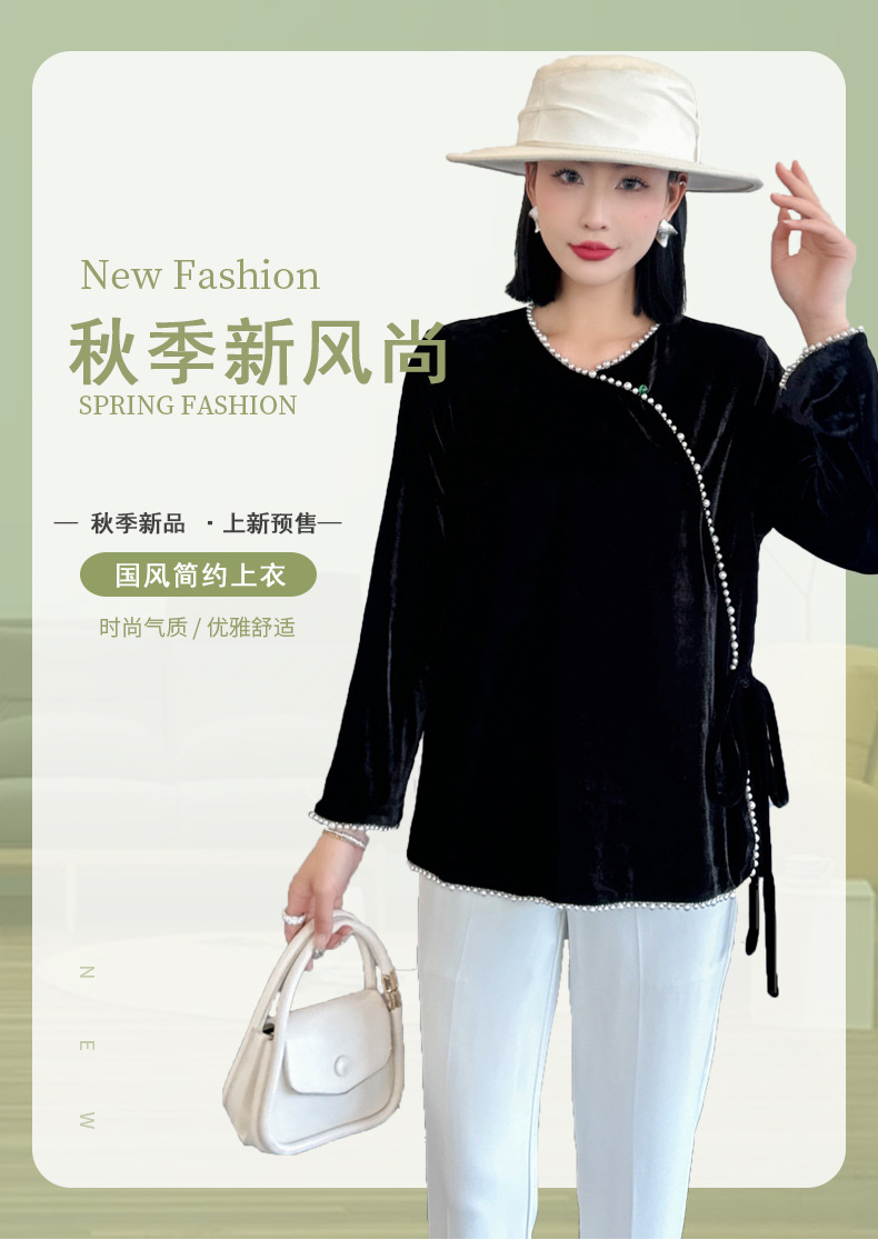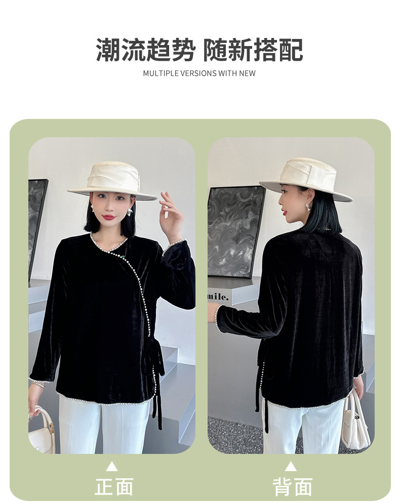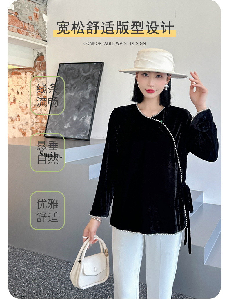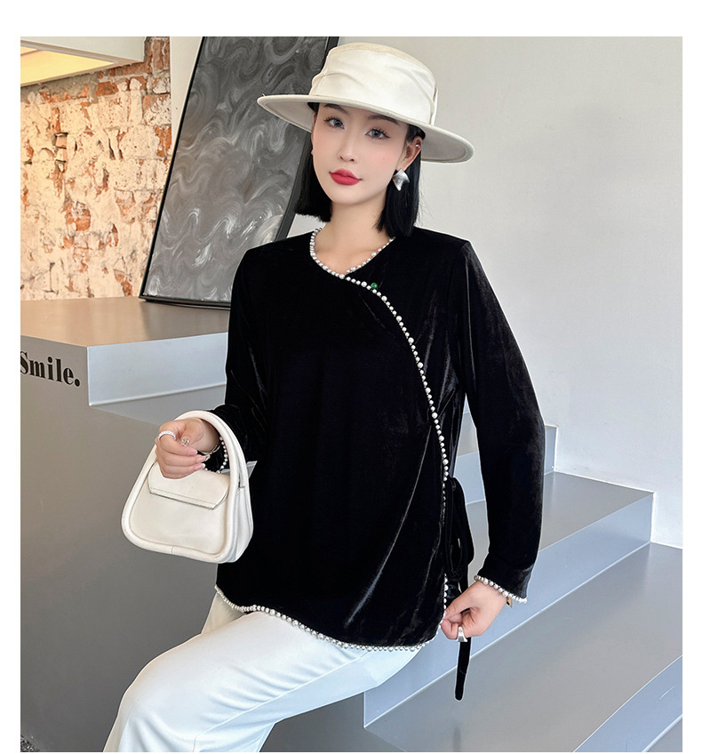 리얼 샷 블랙 벨벳 중국 탑 레트로 여성 2023 가을 새로운 패션 서양식 긴 소매 페르시 셔츠스토어 가기