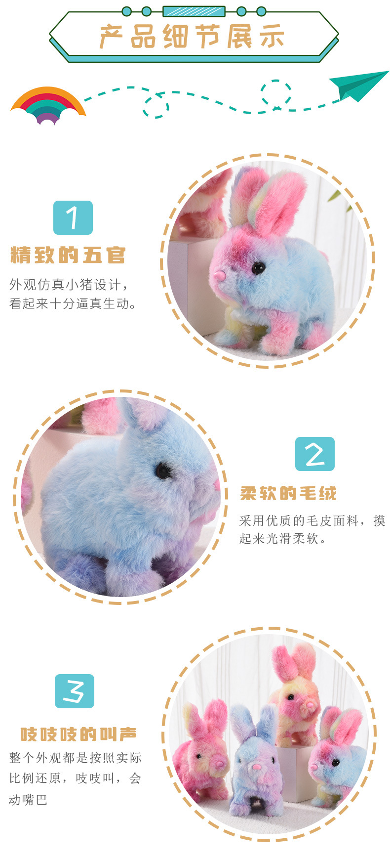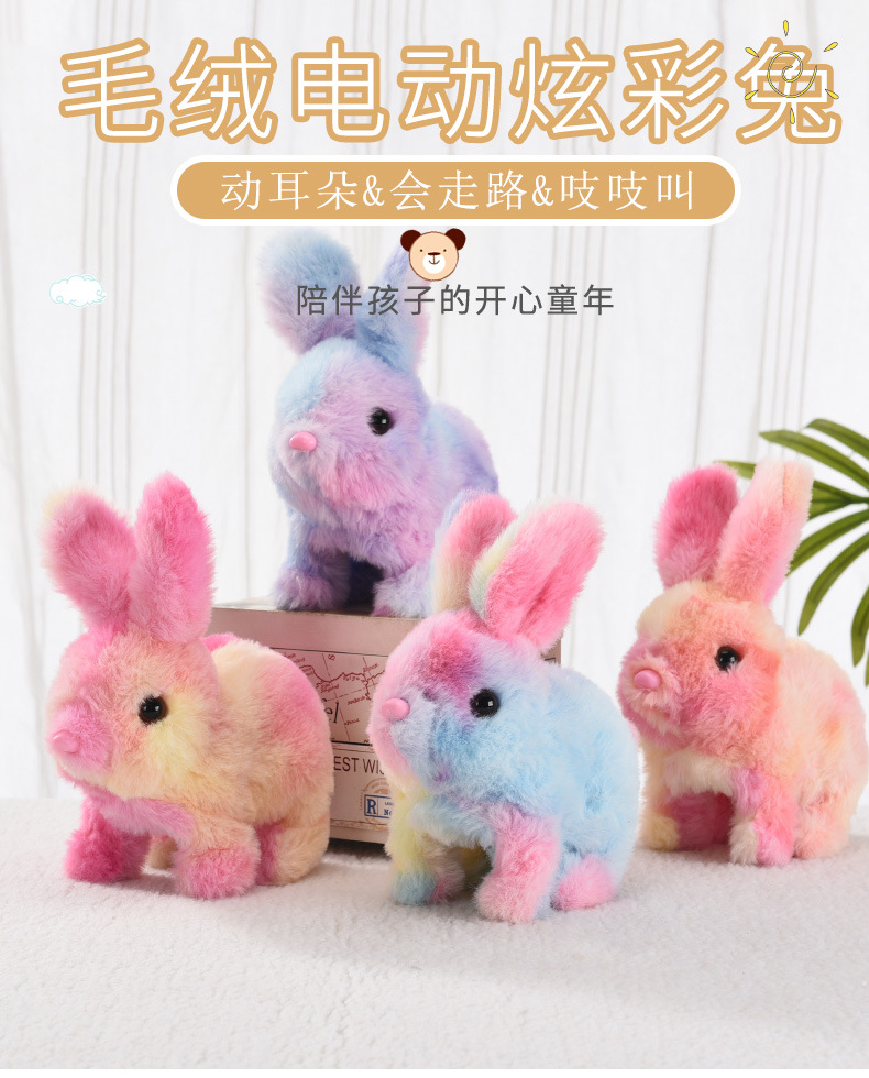 봉제 전기 토끼는 귀를 움직이고 입을 때리고 화려한 토끼 어린이와 소녀 놀이 집스토어 가기