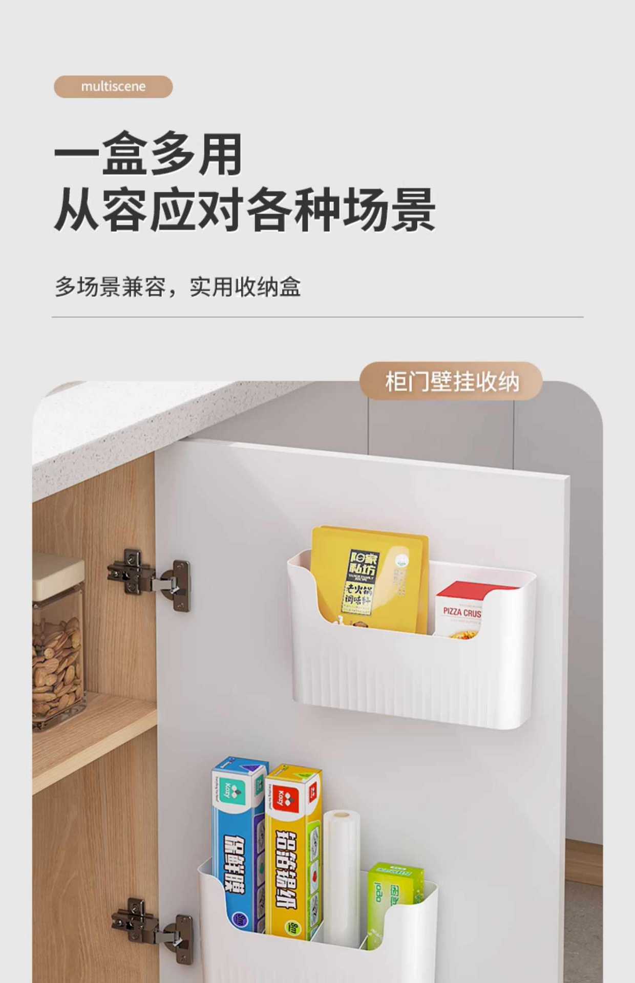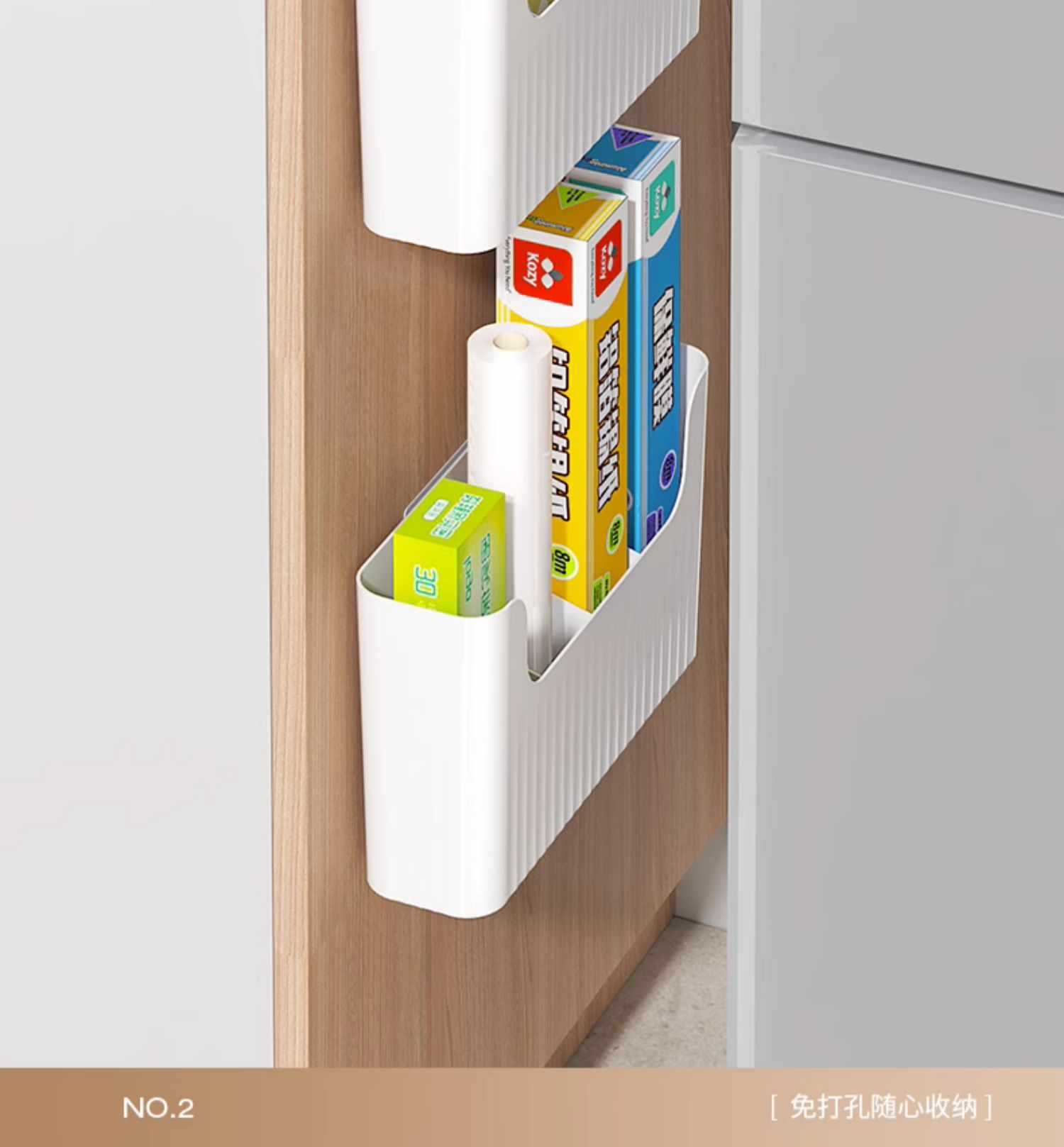 주방 캐비닛 도어 플라스틱 랩 보관 랙 보관함 벽걸이 캐비닛 도어 내부 냉장고 보관 랙 측면 보관