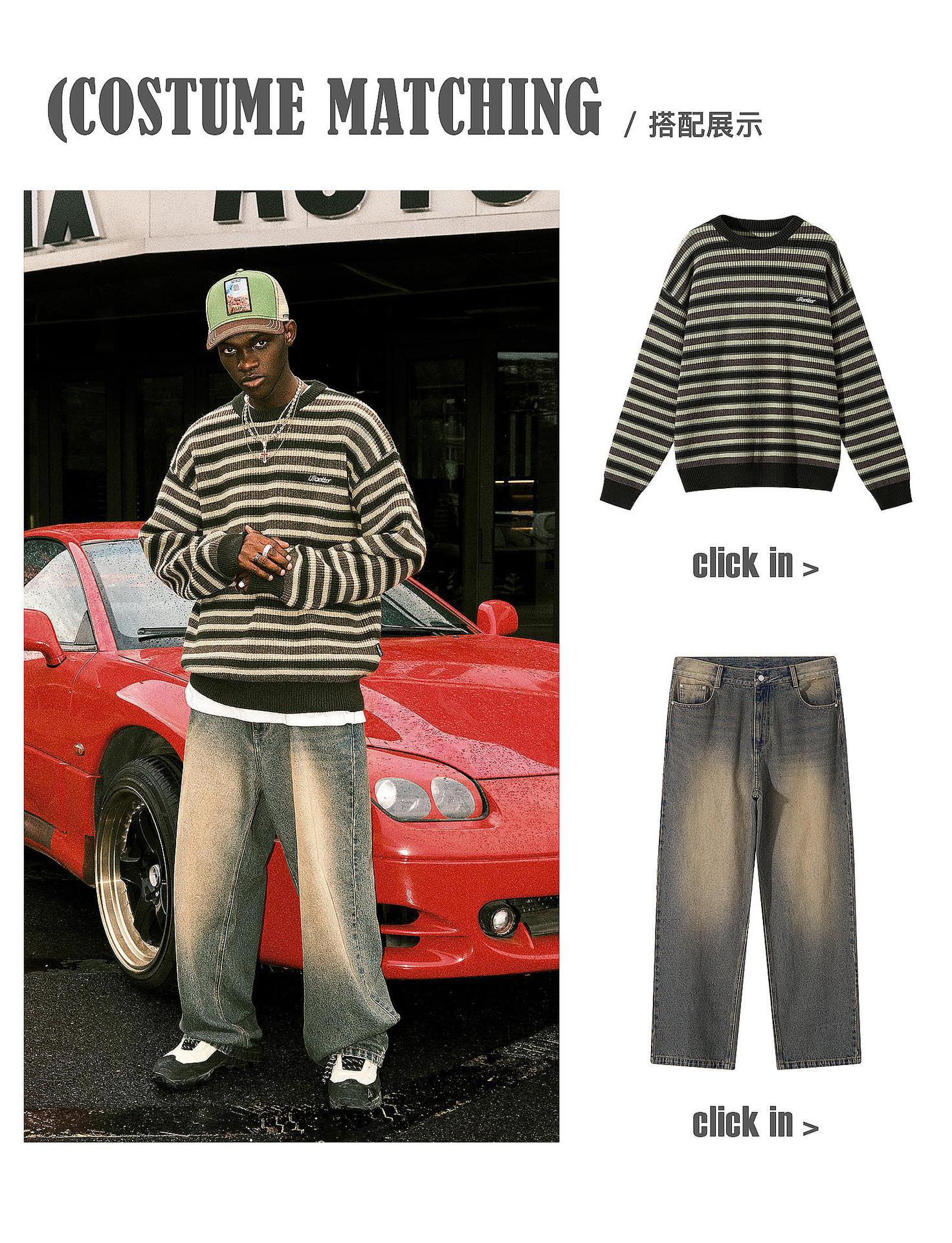 스트라이프 스웨터 남성 가을과 겨울 새로운 스웨터 풀오버 긴팔 스웨터 느낌 타이드 브랜드 코트 크로스 보더 도매스토어 가기