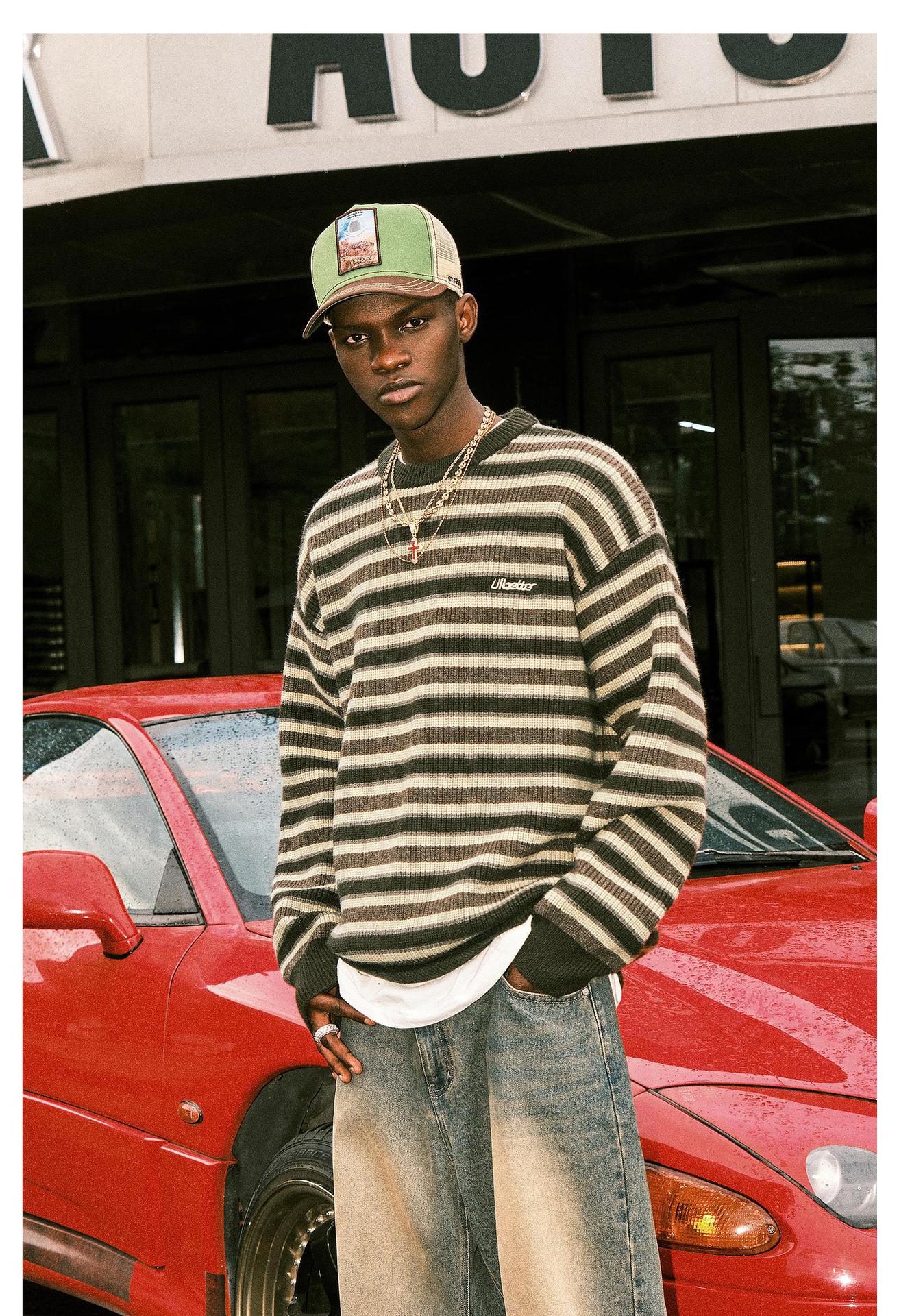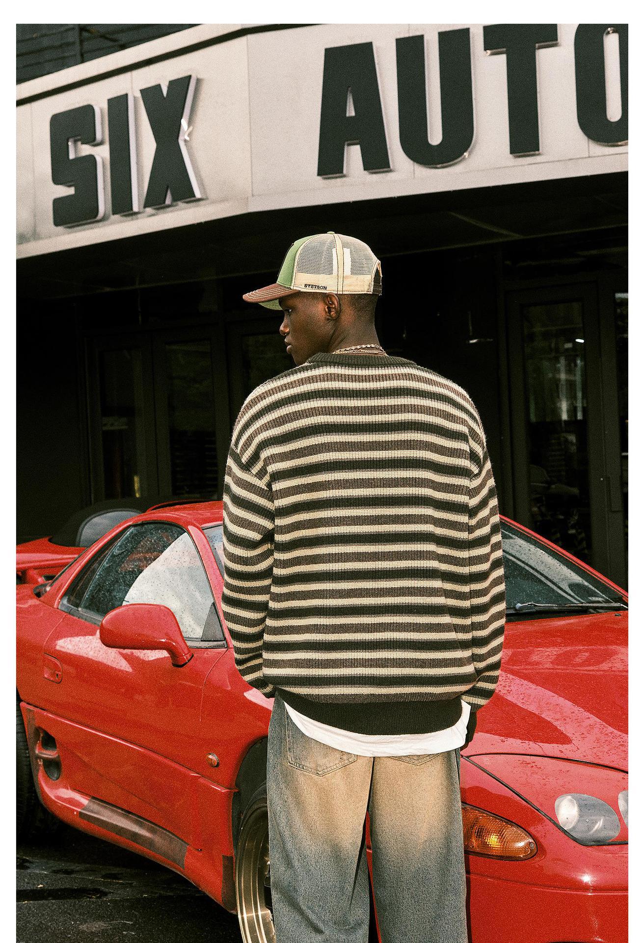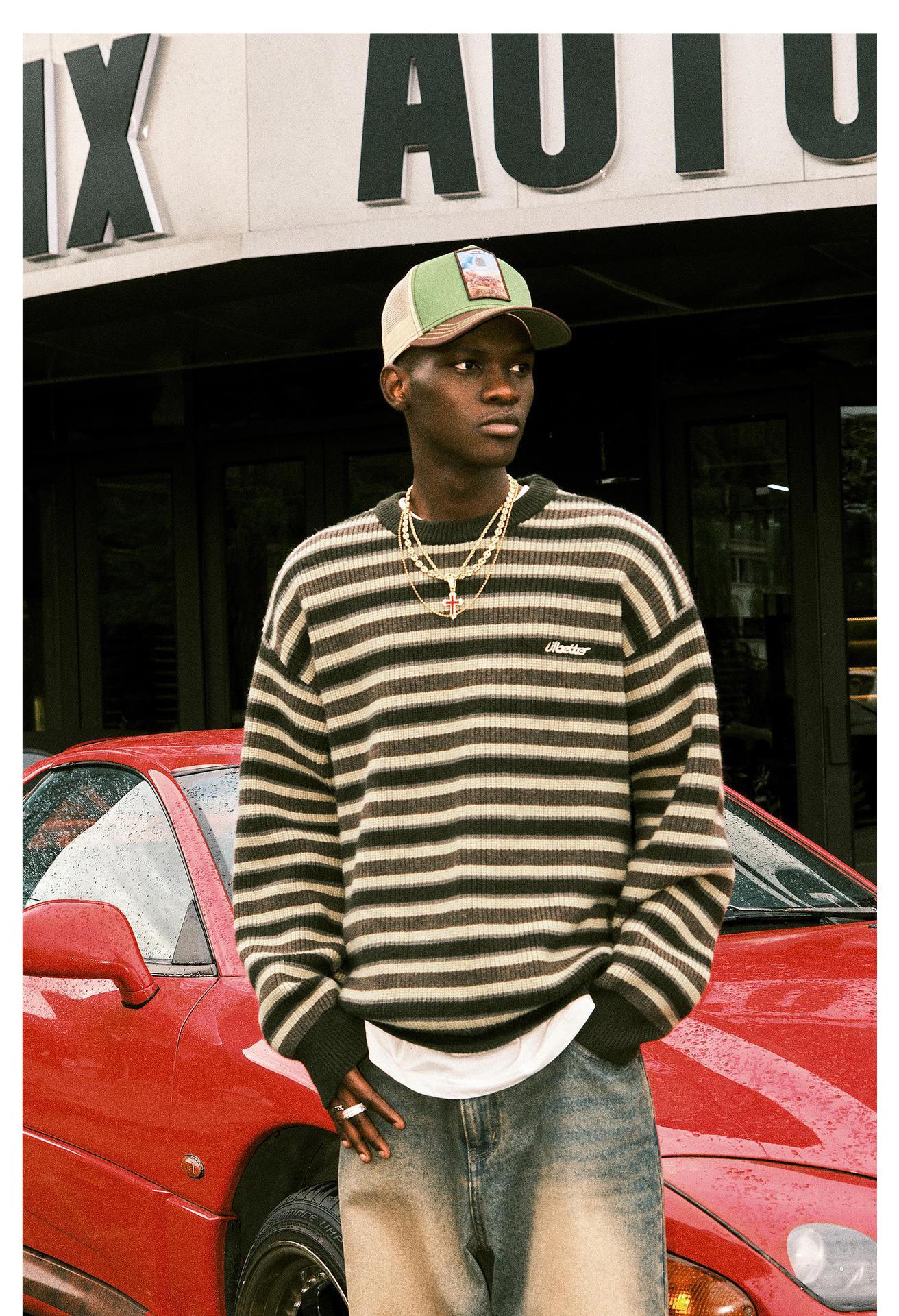스트라이프 스웨터 남성 가을과 겨울 새로운 스웨터 풀오버 긴팔 스웨터 느낌 타이드 브랜드 코트 크로스 보더 도매