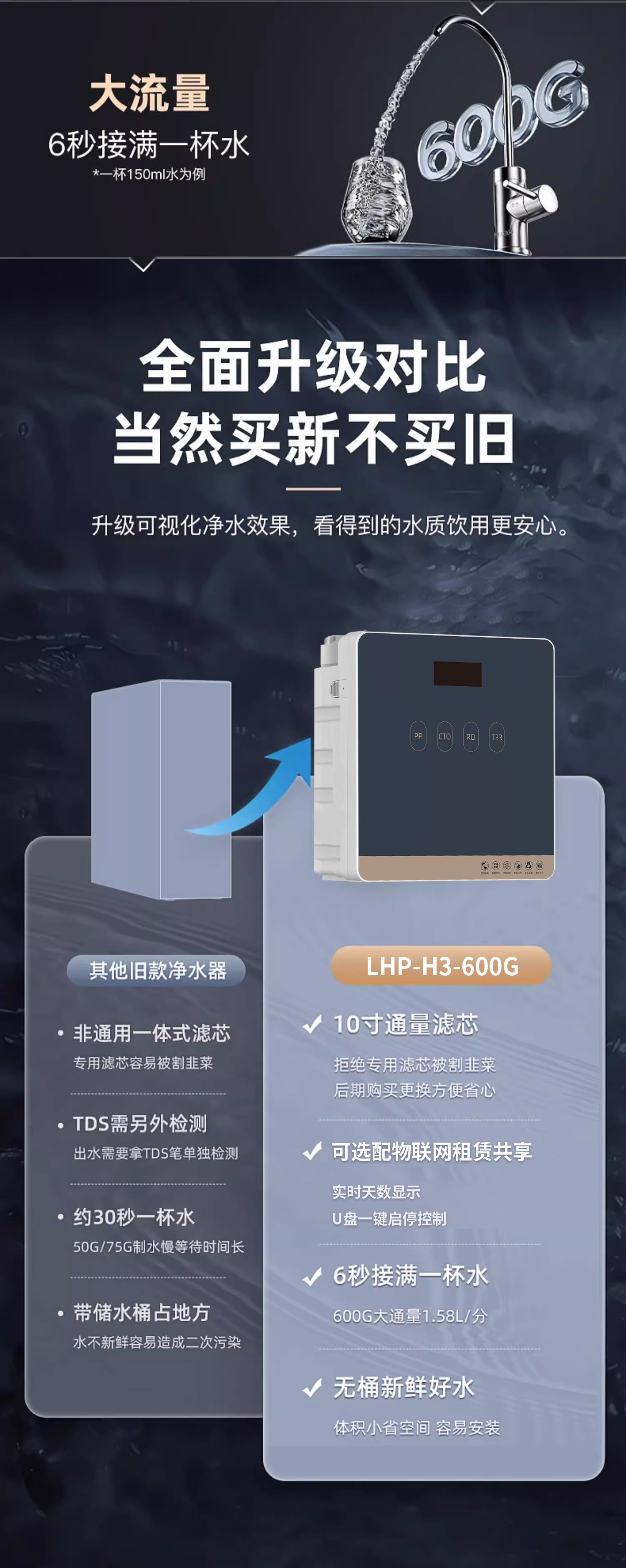 600G 대형 유량 임대 공유 정수기 가정용 역삼 투 직접 식수 청정기 스트론튬 미네랄 RO 정수기스토어 가기