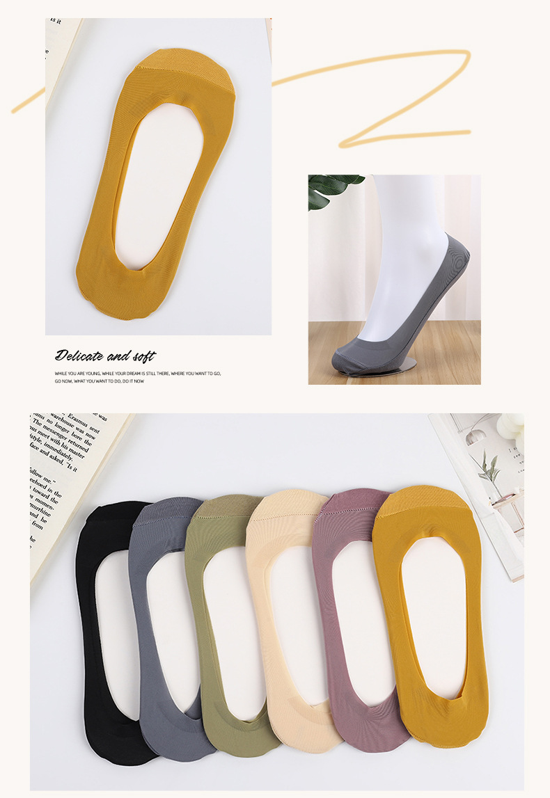 보이지 않는 얕은 양말 여성용 가을 보트 양말 미끄럼 방지 바닥 봄과 가을 얇은 얼음 실크 보이지 않는 양말 원활한 통기성 양말스토어 가기