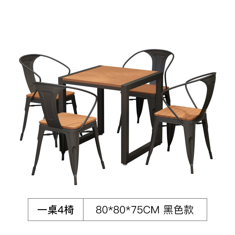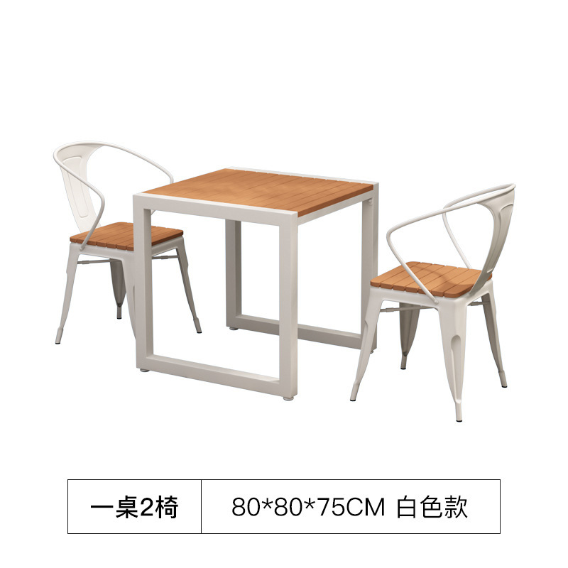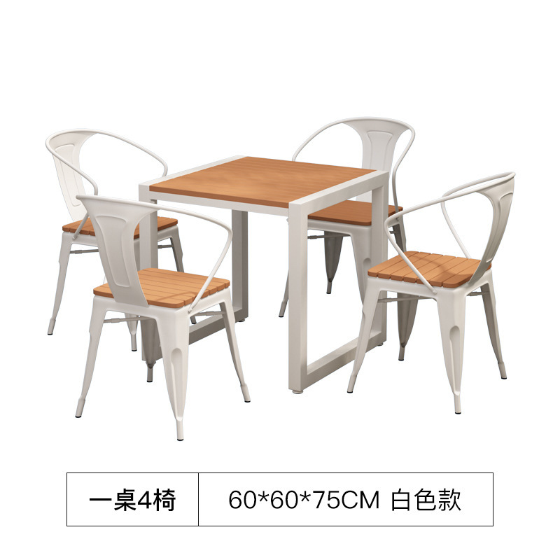 야외 안뜰 작은 사각형 테이블 홈스테이 정원 테이블과 의자 야외 부식 방지 자외선 차단제 철 플라스틱 나무 발코니 식탁과 의자 조합