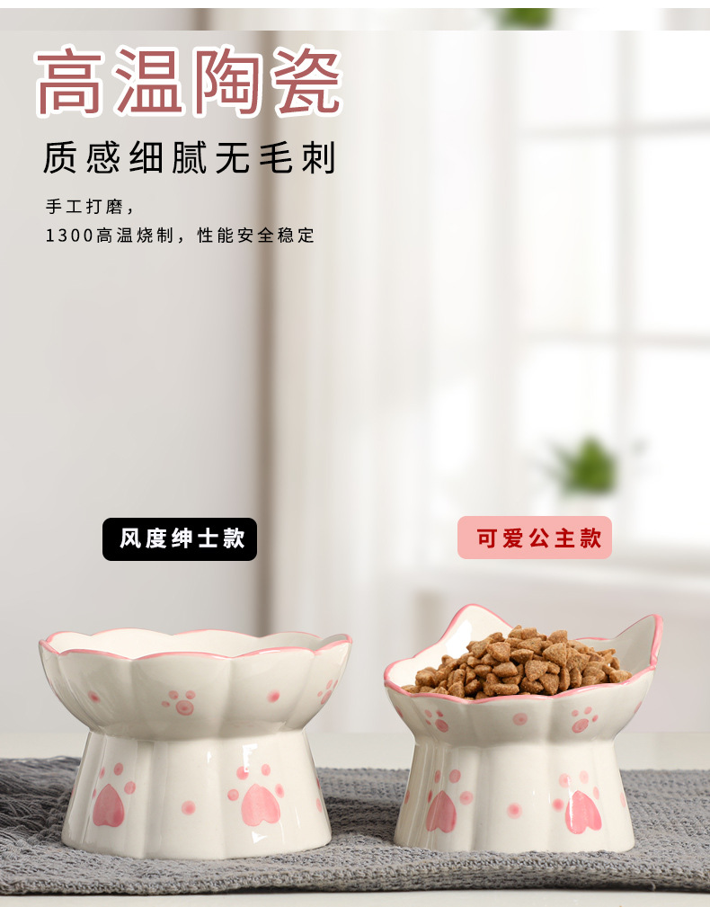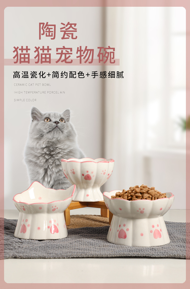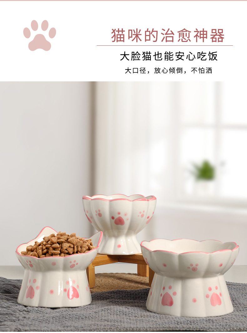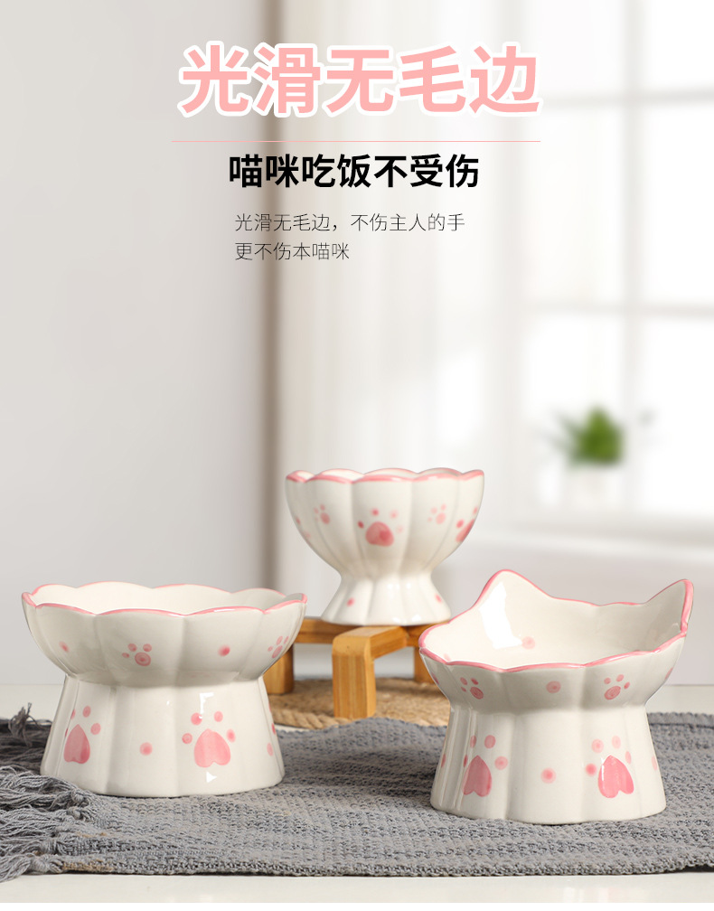순수 손으로 그린 고양이 그릇 세라믹 높은 발 목 보호 애완 동물 그릇 개 그릇 노크 방지 고양이 그릇 고양이 물 그릇 애완 동물 용품스토어 가기