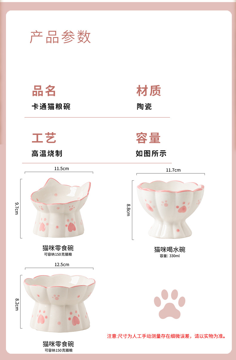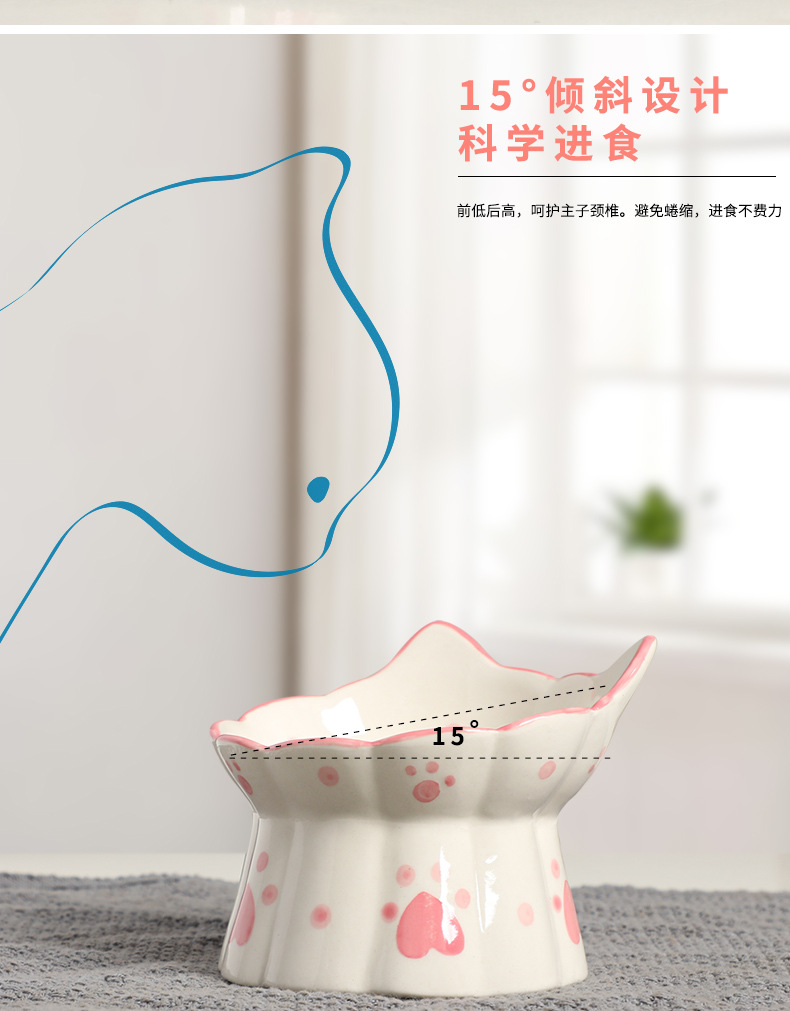 순수 손으로 그린 고양이 그릇 세라믹 높은 발 목 보호 애완 동물 그릇 개 그릇 노크 방지 고양이 그릇 고양이 물 그릇 애완 동물 용품